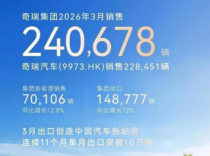 作为自主车企的“老大哥”,奇瑞集团乘着新能源汽车的东风,近两年重新回归自主第一梯队。最新消息,奇瑞集团3月销量24万辆,同比大涨12.1%。其中奇瑞汽车销量达到22.8万辆。今年一季度,奇瑞集团累计销量为60万辆。