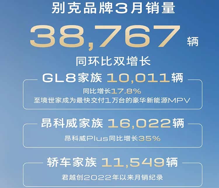 可以看到,上汽集团旗下多个品牌3月表现突出。比如别克品牌3月销量达到36906辆,昂科威、 君越(参数|询价)、君威、GL8陆尊等车型热销,涨势喜人。上汽乘用车MG品牌也打造出爆款车型,全新MG4的3月零售销量超过1.4万辆,已经连续6个月实现单月破万。而智己汽车更是凭借LS6、L6等热门车实现暴涨,接下来还将推出全新力作智己LS8。