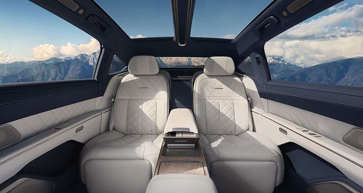 多层隔音玻璃与35扬声器杜比全景声系统的加持,营造出静谧舒适的座舱环境,进一步提升了商务接待的档次感。