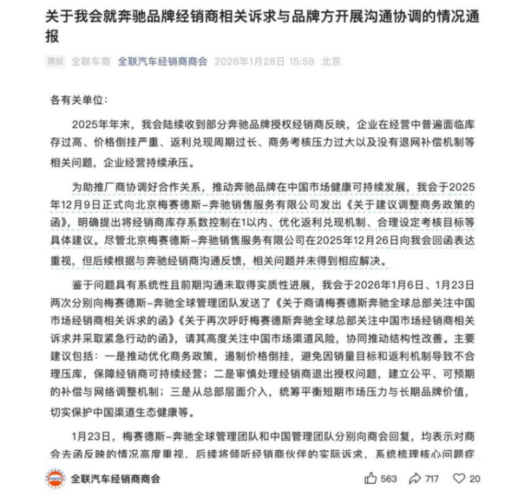 2026年,没有看到奔驰进入中国市场40年的辉煌景象,迎来的却是经销商们与奔驰之间的“相杀局”。