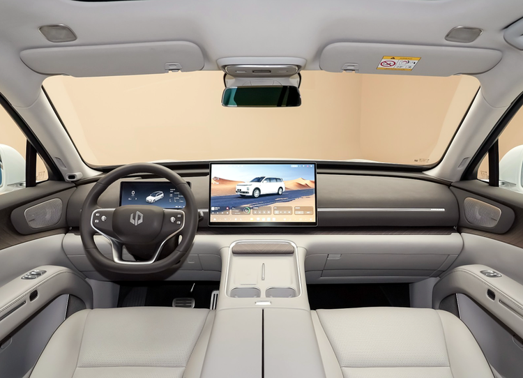 内饰设计以简洁科技风格为主,配备多屏联动系统。车内提供5座、6座及7座多种布局,并搭载全电动车规级冷暖冰箱。动力系统方面,增程版搭载由极光湾科技生产的1.5T增程器,最大功率95千瓦,匹配80.3千瓦时电池组,CLTC纯电续航里程为500公里。