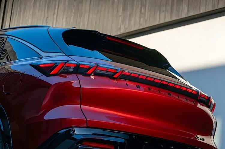 外观设计无疑是 QX65 的最大亮点,设计团队采取了所谓「Ma」的日式空间美学,舍弃繁杂的车身线条,转而以平滑且充满肌肉感的钣件折线营造出优雅的视觉重心。车头引入了源自新一代 QX80 的设计语汇,包含巨大的双弓形水箱护罩以及极具未来感的数字琴键式LED 头灯组,从 B 柱后迅速下滑的斜背曲线配合达 22 寸的圈胎组,营造出一种蓄势待发的俯冲感。