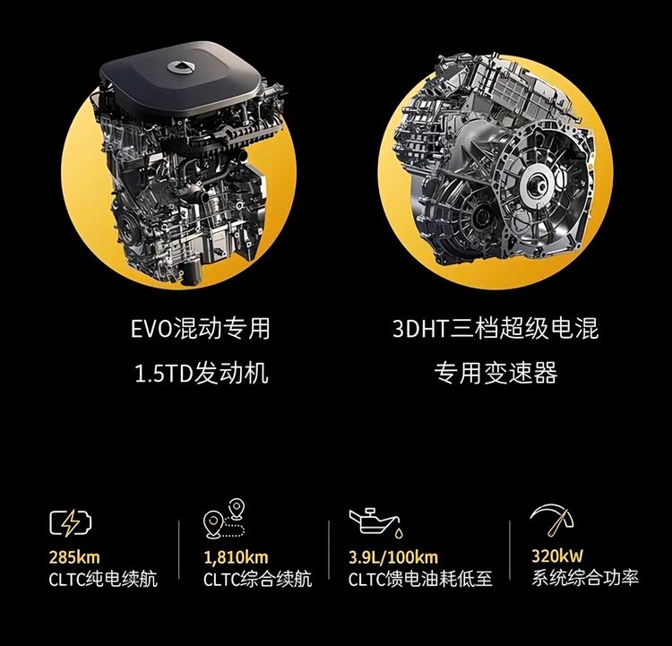 动力系统是精灵#6 EHD的核心亮点,搭载吉利雷神电混2.0技术赋能的1.5T插混系统,发动机最大功率120千瓦,系统综合功率达320千瓦(约435马力),匹配3挡DHT混动专用变速箱 。相比单/双挡混动系统,3挡DHT拥有更宽传动比范围,能让发动机和电机在更多工况下保持高效区间:城市低速优先电驱,中高速巡航发动机直驱降油耗,兼顾动力与经济性。电池提供20千瓦时和41.46千瓦时两种容量,对应CLTC纯电续航110公里和285公里,综合续航1810公里,馈电油耗3.9升/100公里,日常通勤可纯电出行,长途出行无需频繁补能 。