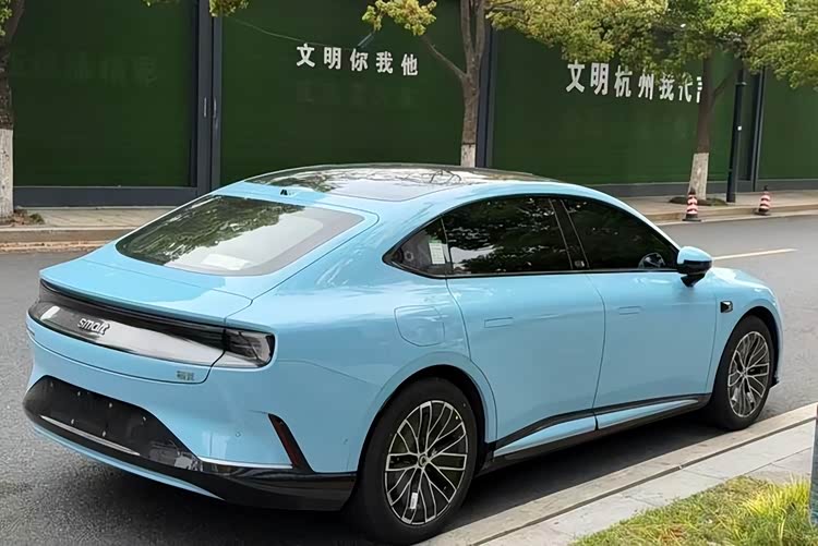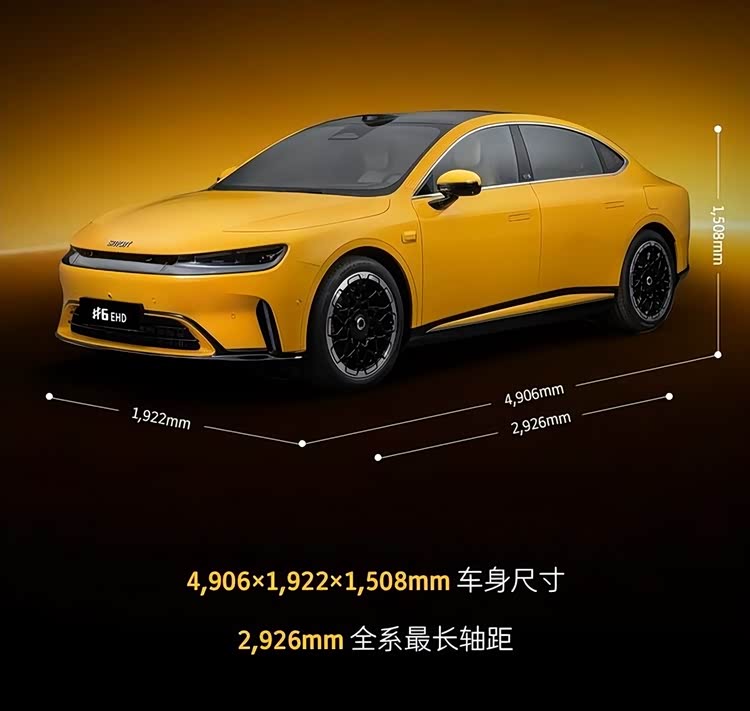 车身侧面采用溜背式轿跑风格,风阻系数预计低至0.23cd,配备隐藏式背光门把手、熏黑侧裙饰板及全新18英寸双色花瓣式轮辋,解锁时门把手内侧背光logo动态点亮。尾部延续贯穿式尾灯设计,灯腔内部采用立体几何灯柱,搭配四档可调主动式尾翼,尾灯预计同样支持自定义灯语,进一步提升夜间辨识度。车身尺寸为4906/1922/1508毫米,轴距达2926毫米,定位中型豪华掀背轿车,提供哑光灰、脉冲黄、蓝色、白色等多种车漆选择,满足不同用户审美需求。