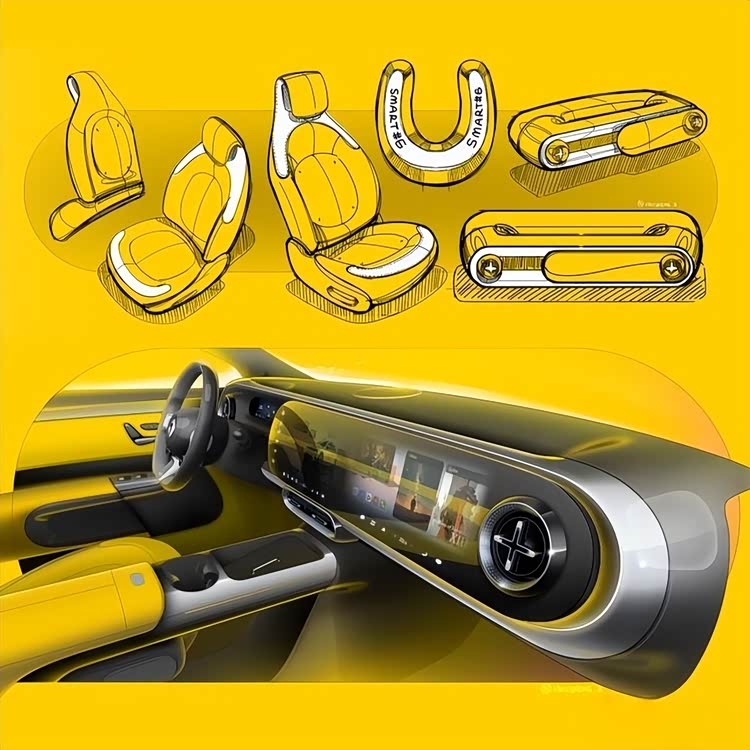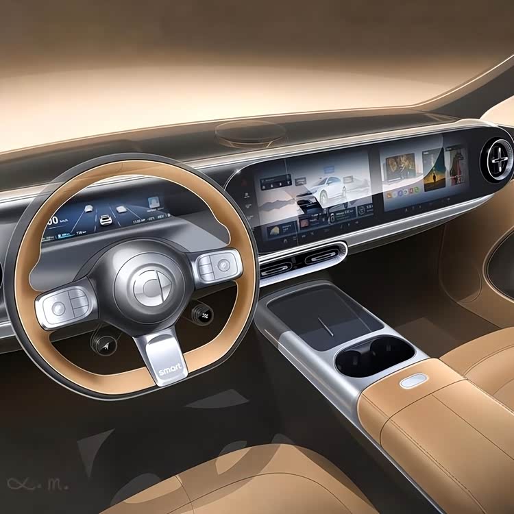 内饰方面,新车延续精灵#5的设计思路,采用整体贯穿式中控台造型,包含内嵌式矩形全液晶仪表盘,以及中控屏+副驾娱乐屏的双联屏设计,双联屏边框采用家族式胶囊设计元素,极具辨识度。车门面板点缀千鸟格图案,空调出风口为圆形+十字扇叶组合,中控台中央配备可升降扬声器,中岛区域设有手机无线充电面板和横置开放式杯架,兼顾实用性与豪华感。整体内饰既保留smart奔驰设计团队的精致基因,又通过更大空间适配家用与商务双重场景,具体内饰配色以官方公布为准。