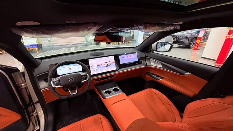 内饰方面,科技感扑面而来。连体悬浮式大屏加上中控台三个大屏幕,操作便捷又显高端。三幅式平底方向盘握感舒适,座椅厚重有质感,第二排座椅还能向前放倒,形成超大装载空间,实用性很强。