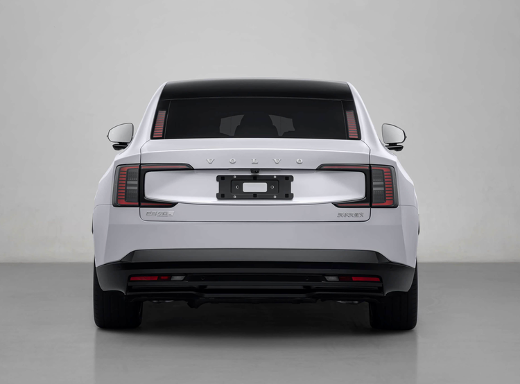 车身侧面,沃尔沃ES90将行政级豪车与时下流行的轿跑式车身设计完美融合在一起,弧线形的车顶正前方配备了激光雷达,车顶后方采用了溜背式设计,搭配着笔挺的高肩线,若隐若现的车身腰线,双拱形轮眉,提供了20英寸、21英寸、22英寸四种不同规格、不同样式的轮毂选择。配备了大尺寸通风刹车盘,多活塞固定式卡钳,支持能量回收系统协同工作的电控制动系统。车窗四周加入了黑色的装饰边框,黑色的B柱/C柱,以及黑色全车隐私玻璃巧妙地结合在一起,不仅营造出更加出色的运动属性,也提供了绝佳的私密性,更加凸显出它行政级轿车的风范。四个隐藏式门把手让车身变得更加简约,也降低了风阻,整车的风阻系数仅为0.25Cd。车身尺寸长宽高分别为5000/1942/1547毫米,轴距3102毫米。