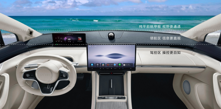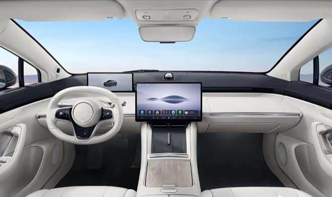 内饰主打科技豪华与舒适兼顾,华为基因拉满,质感碾压同价位小米SU7。环抱式座舱呈现出飞船般的视觉感,中控台与车门形成错落的阶梯式台面,大面积软质材料包裹,搭配细腻缝线,触感细腻无廉价感。搭载华为Harmony OS智联系统,操作流畅不卡顿,配合全液晶仪表与悬浮中控屏,科技感直接拉满,比小米SU7的车机系统更流畅、更智能。