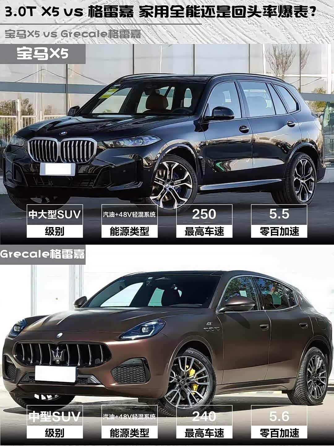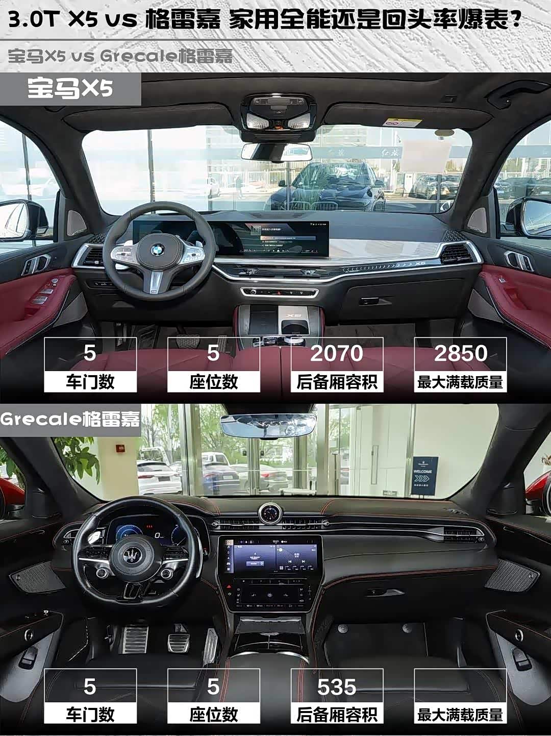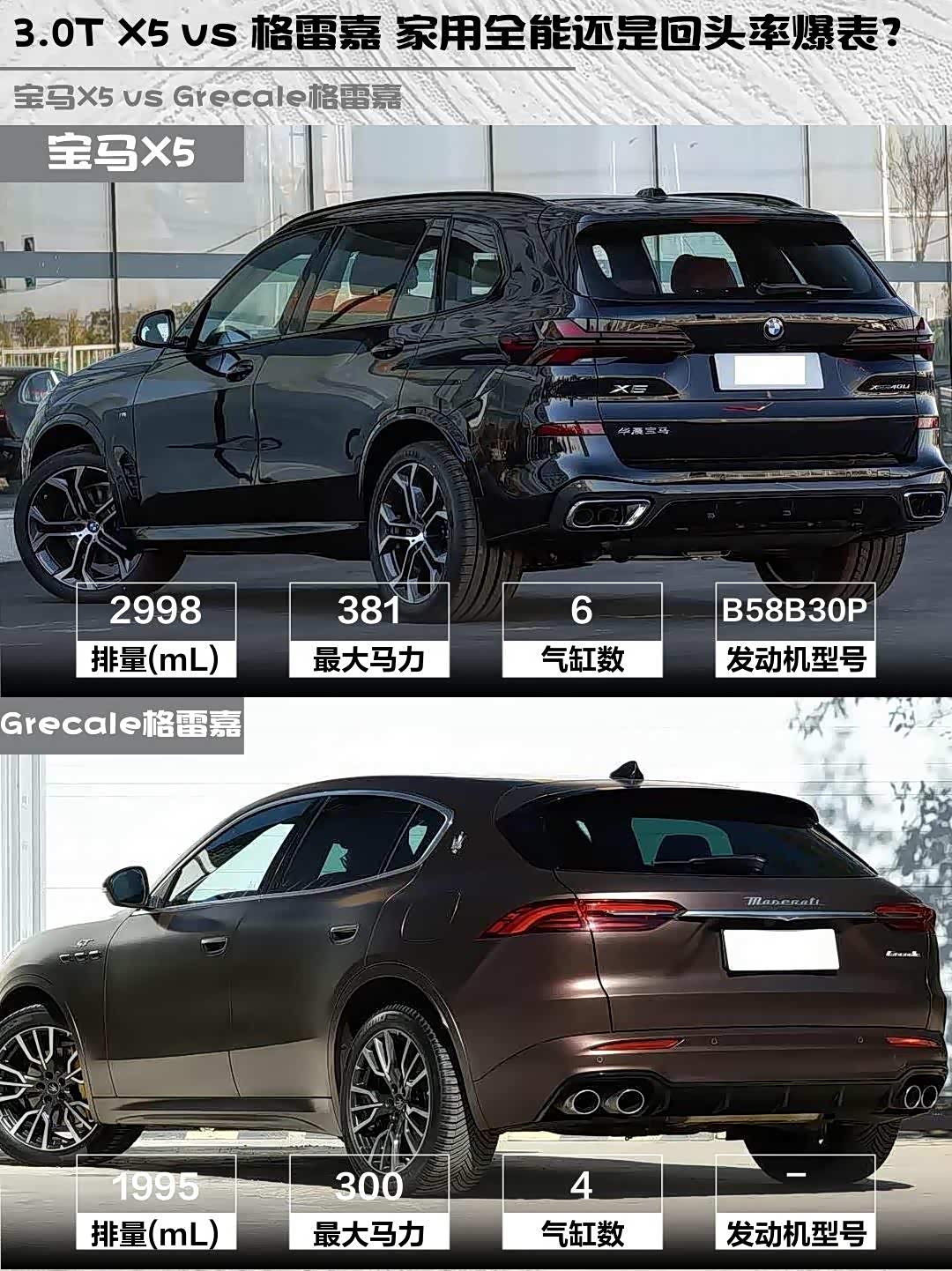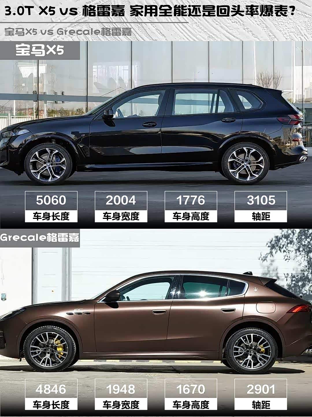 宝马X5 2026款 xDrive 40Li M运动曜夜套装 vs. Grecale格雷嘉(参数|询价) 2023款 2.0T GT,谁才是你的梦中情车?🚗💨