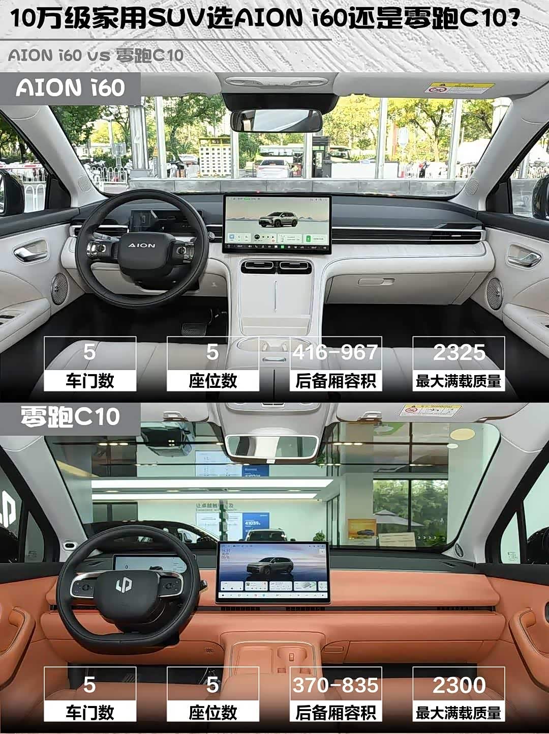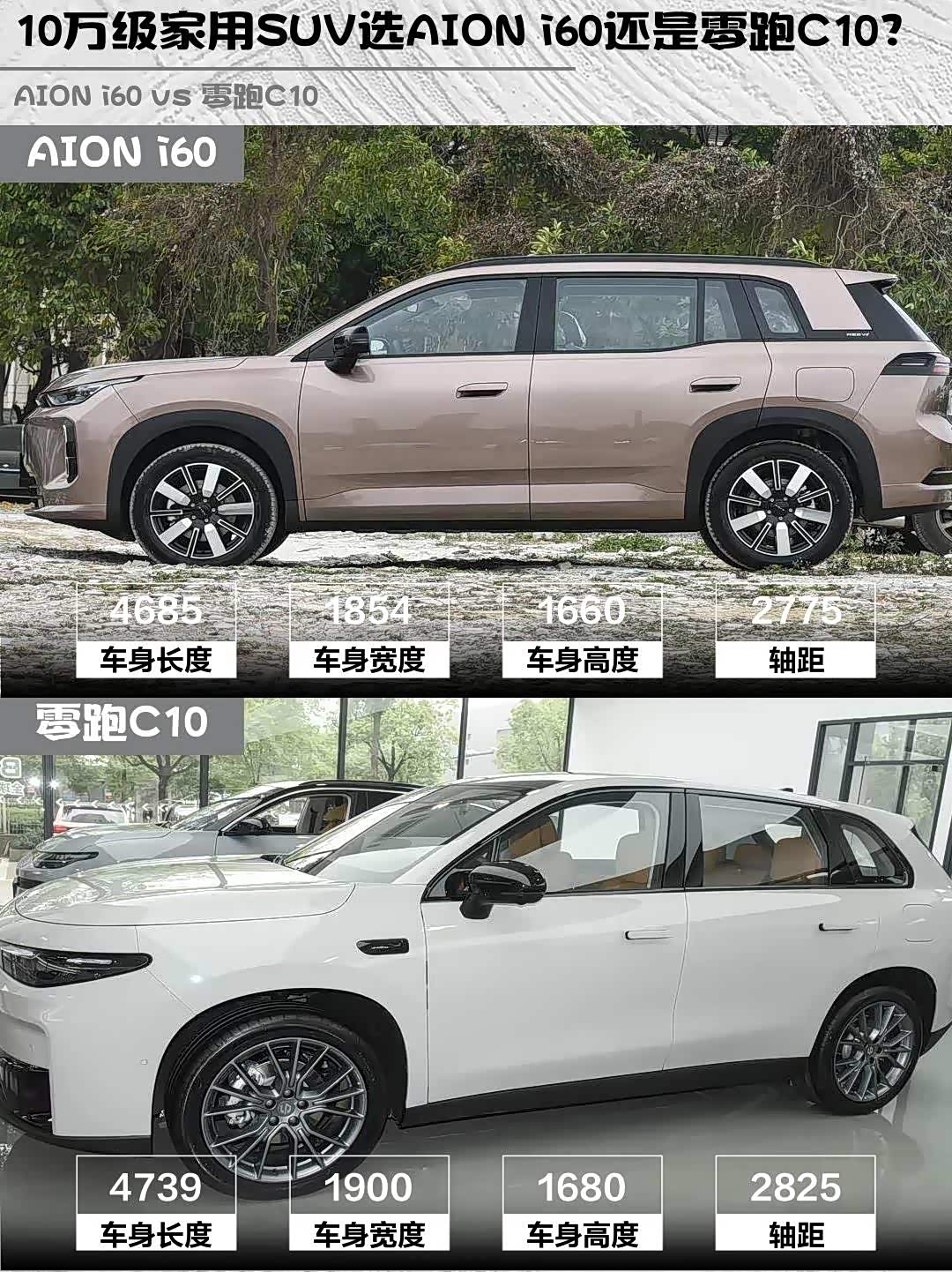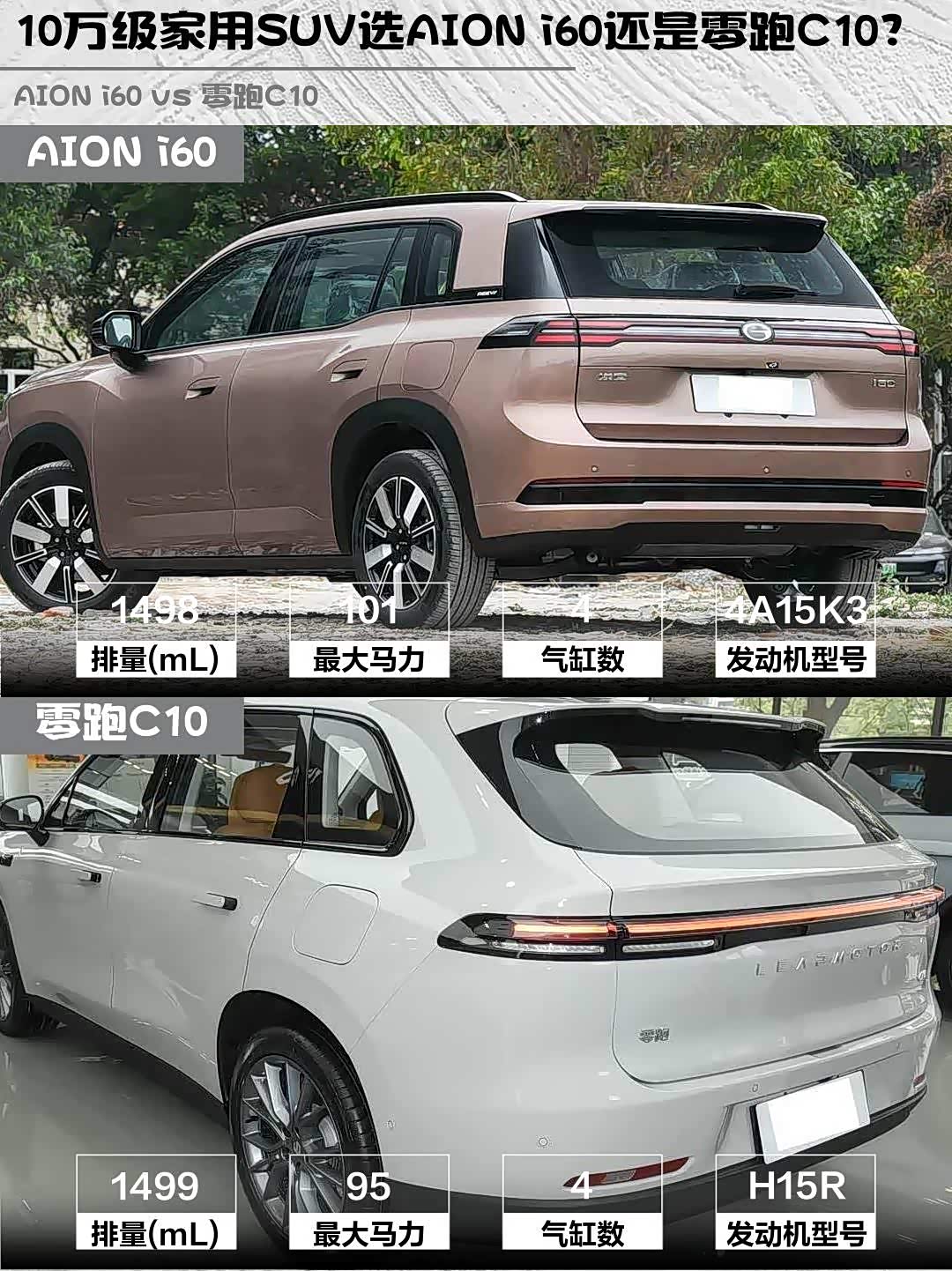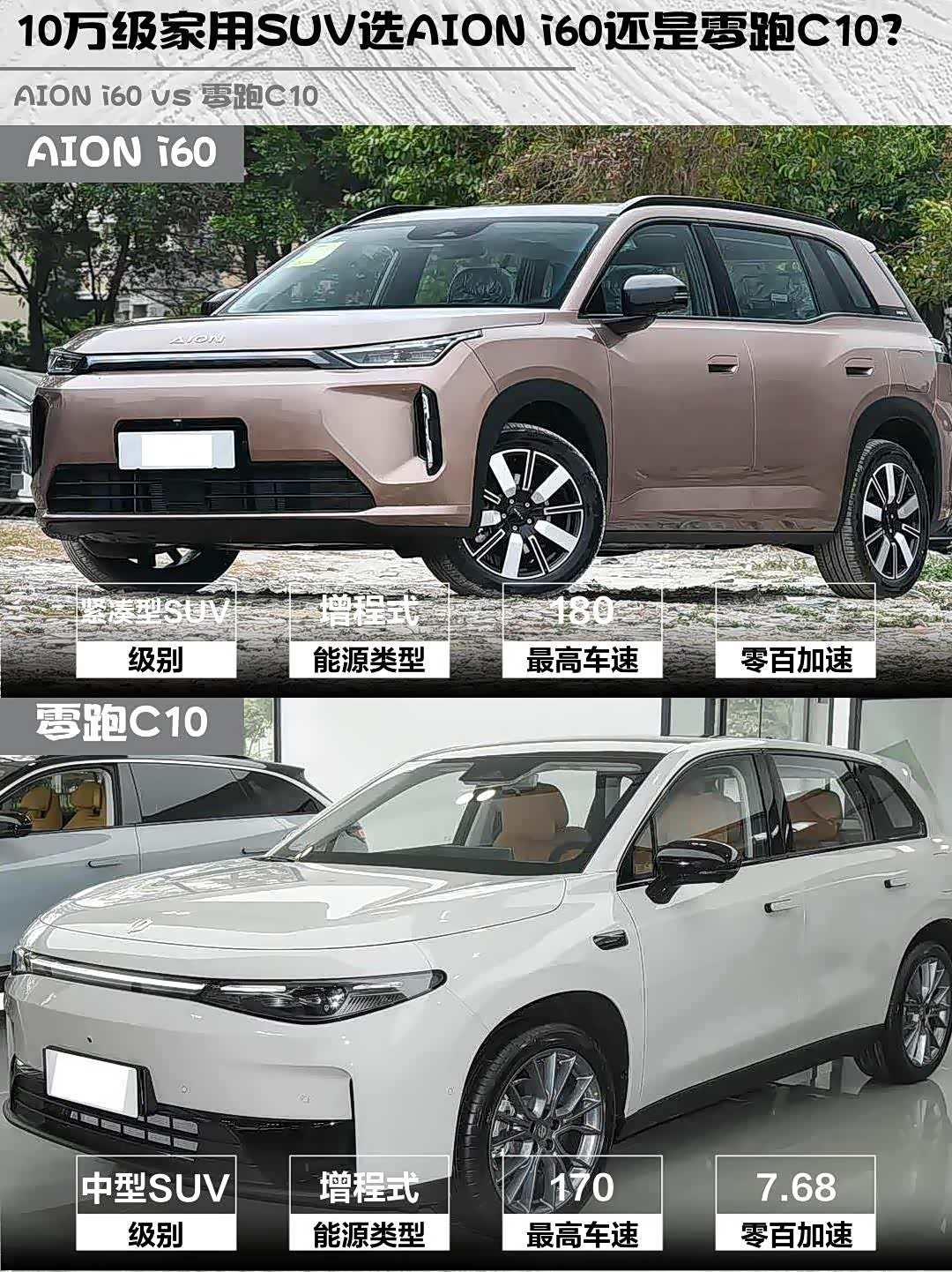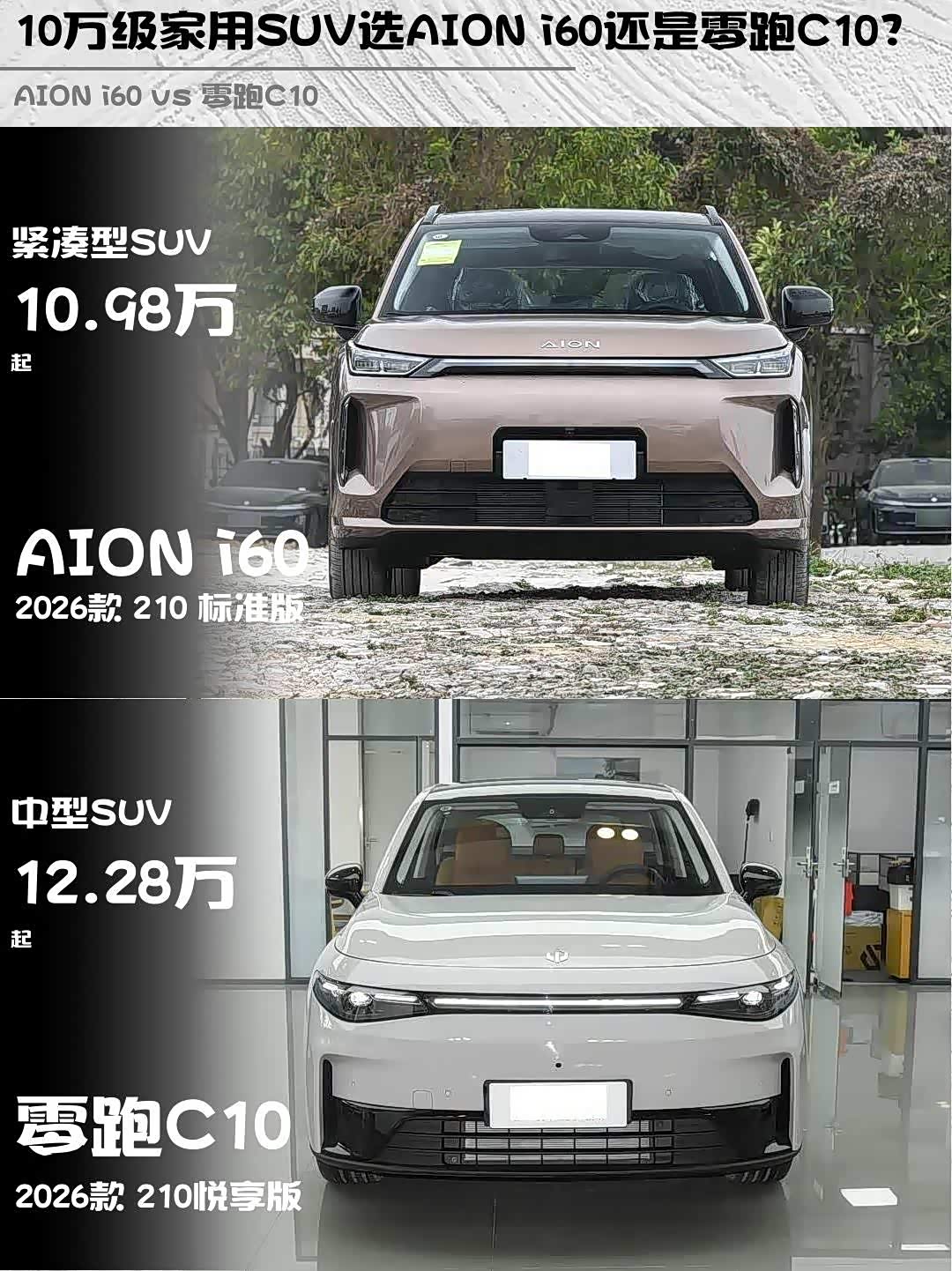 最近在选增程式SUV的朋友看过来!今天给大家深度对比两款热门车型—— AION i60(参数|询价) 2026款 210标准版和零跑C10 2026款 210悦享版,都是10万级家用神车,但细节差异还真不少!🚗💨