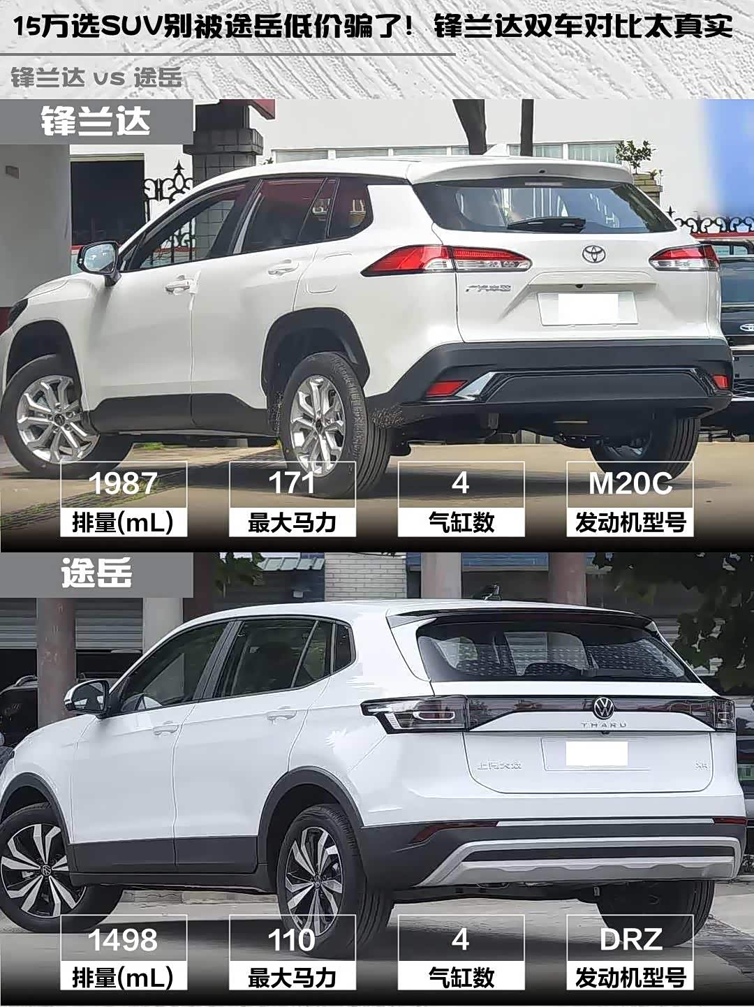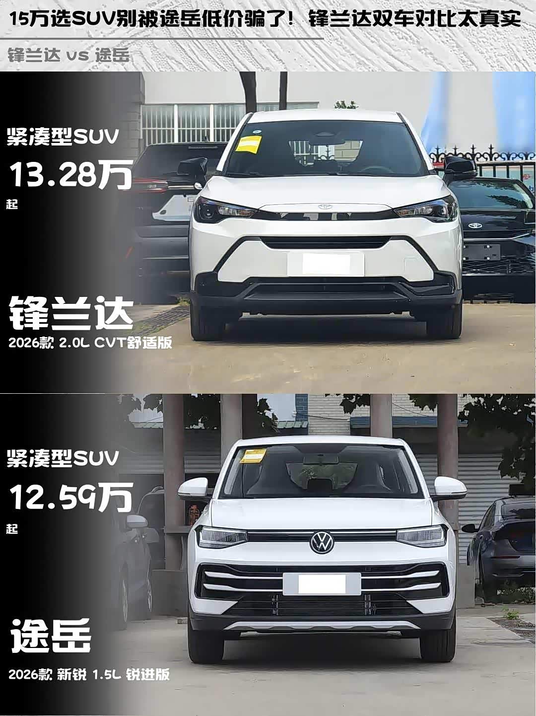 最近在选15万级SUV的朋友看过来! 锋兰达(参数|询价)2026款2.0L CVT舒适版和途岳2026款新锐1.5L锐进版深度对比,看完这篇你就知道怎么选了!🔥