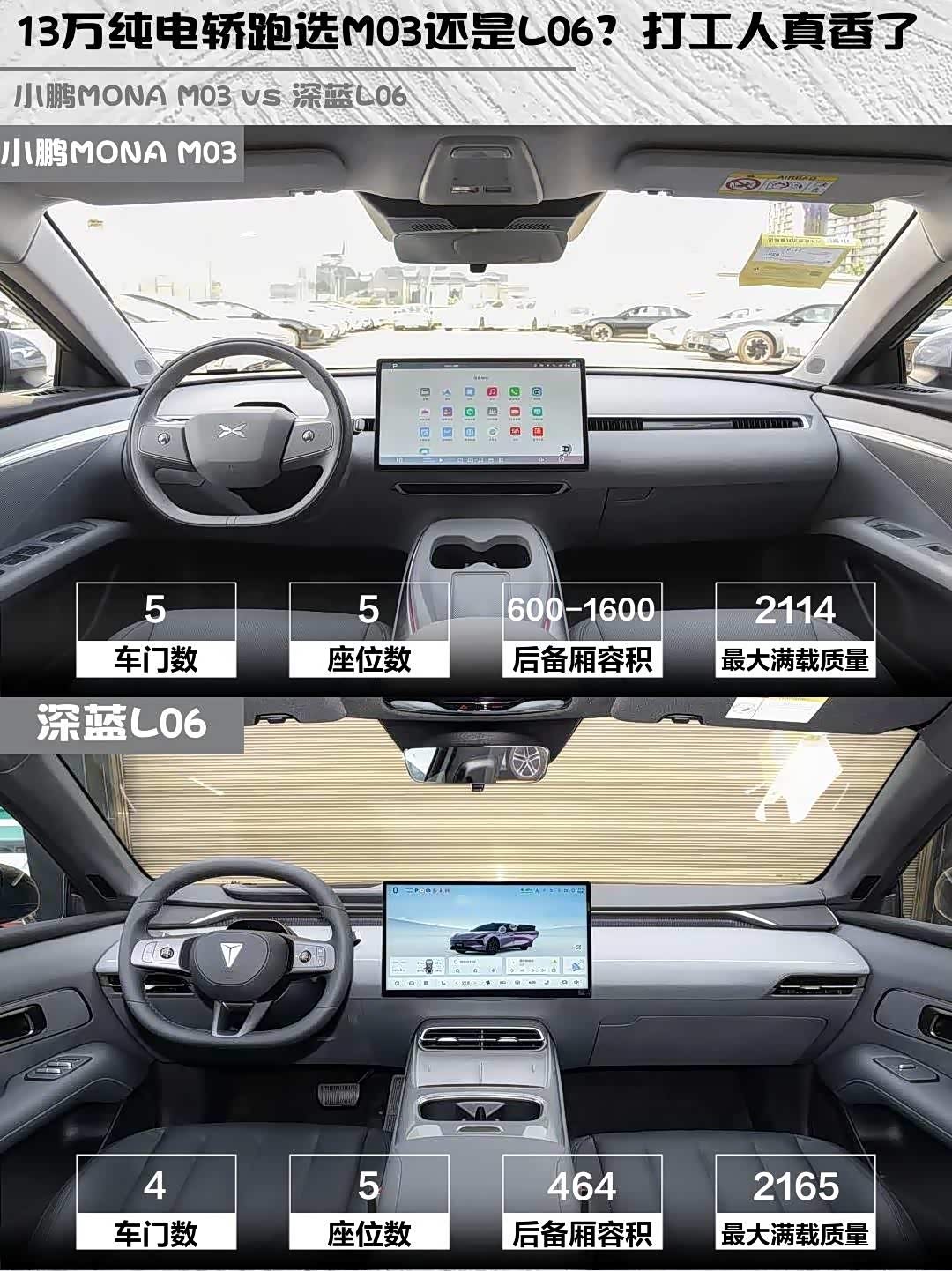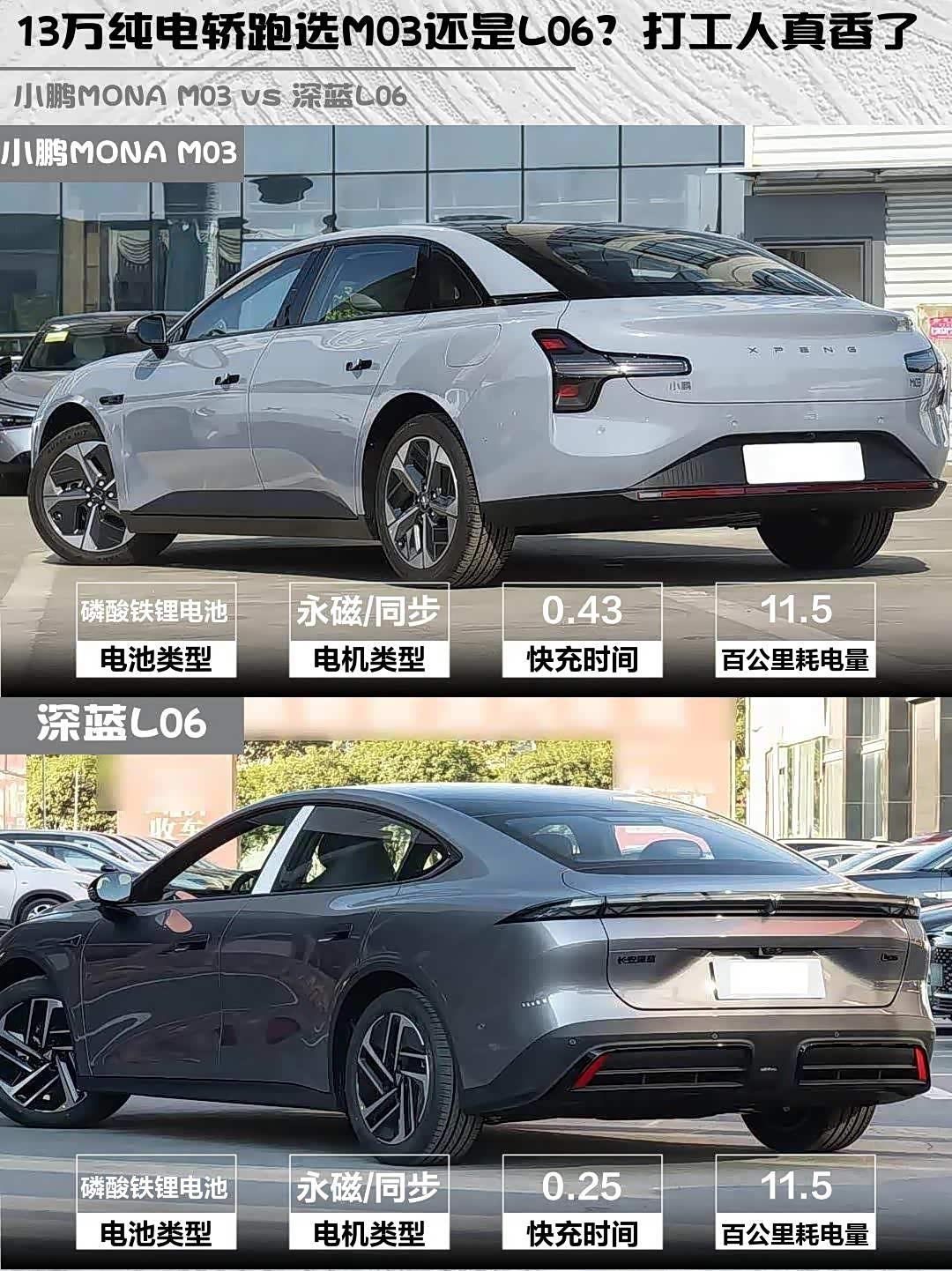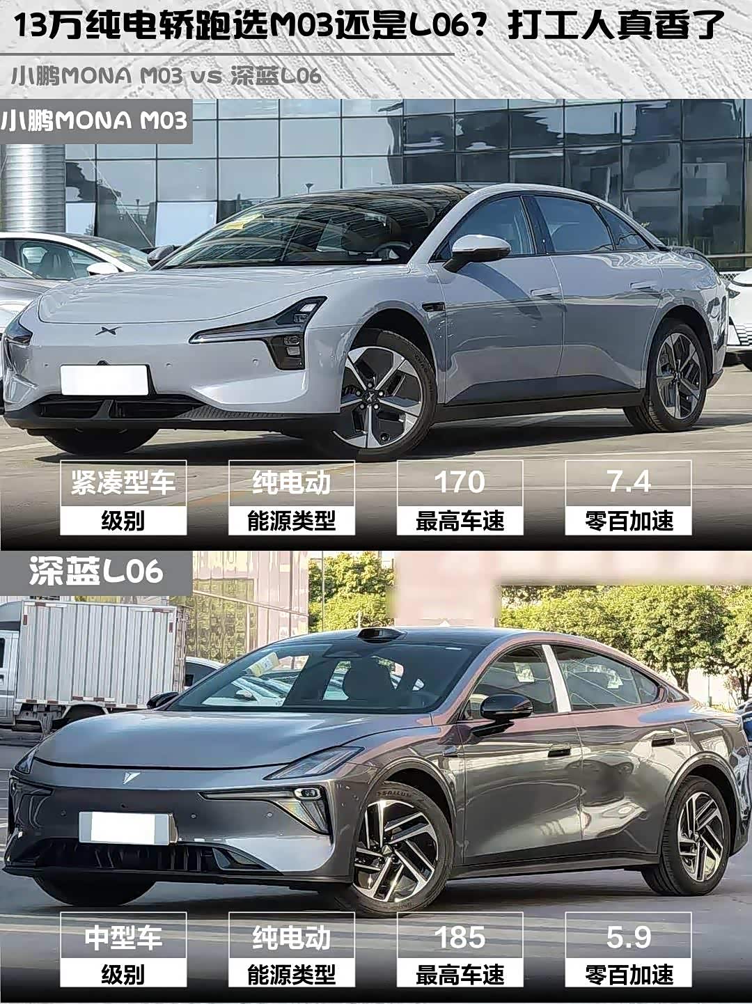 小鹏MONA M03(参数|询价)和深蓝L06这两款纯电轿跑最近真是火出圈了!作为深度体验过两台车的车主,今天就从实际使用角度给大家做个干货对比👇