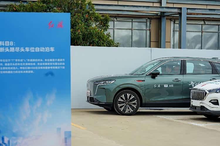 那纸上谈兵也没意思。这次试驾活动在同济大学的专业测试场进行,设置了一系列挑战。首先是智能泊车测试,红旗HS6的泊车能力,官方说法是"成功率超98%"。我实测了几个场景,表现确实都是非常OK的。