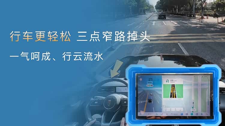 另外,红旗HS6还会三点式窄路掉头,测试路段模拟老城区窄巷,路面宽度勉强容纳两辆车,两侧还有临停车辆,但当需要掉头的时候,它能自主判断道路宽度和周围障碍物,规划最优路径,先打一把方向,再切换倒挡重新摆正车身,快稳准完成掉头,不会卡在路中间进退两难,感觉比不少老司机还利索。