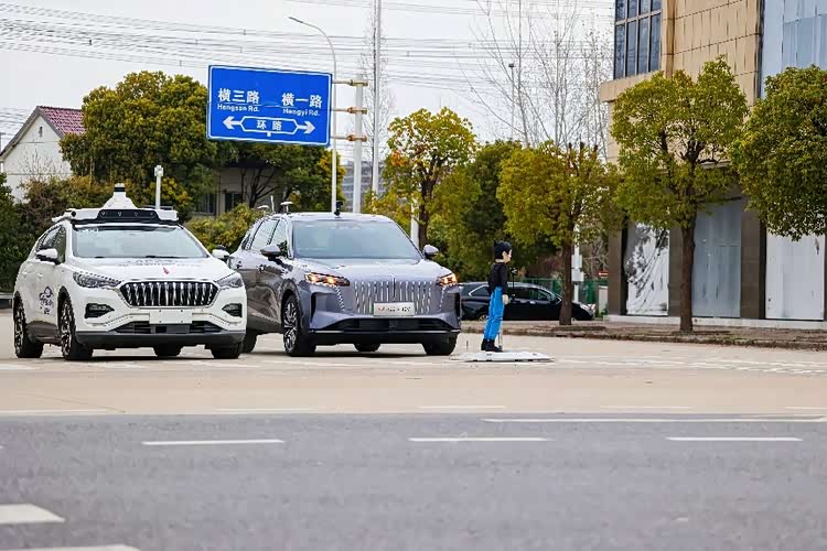在这个环节中,让我有点意外的是红旗HS6对非标准障碍物的处理能力,传统智驾系统大多是白名单识别,只认识车、人、红绿灯这些常见物体,遇到纸箱、可乐瓶、大型玩偶这种不规则障碍物,要么视而不见,要么直接猛刹吓你一跳。但这套卓驭端到端4.0,能自主判断障碍物的风险等级,可以实现灵活规划绕行路径,不盲目急刹,也不冒险硬闯,体感属实不错。