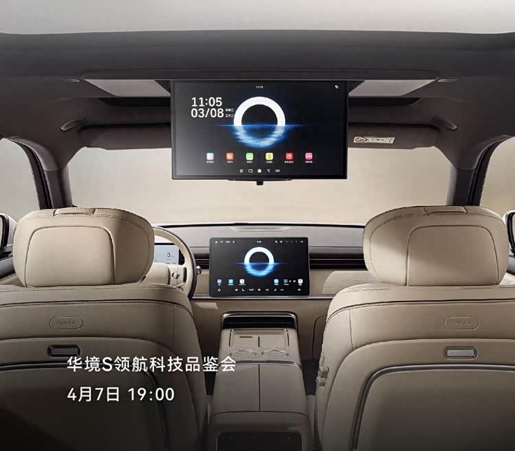 重点关注本次发布的内饰官图。结合最新发布的官图来看,华境S以实用与舒适为核心,采用环抱式座舱布局,大面积采用软质材料包裹,搭配精致饰条与64色氛围灯,营造出温馨豪华的驾乘氛围。核心亮点是后排位置具有吸顶娱乐屏、二排小桌板和后排空调出风口等配置,吸顶娱乐屏支持4K播放,二排小桌板可满足办公、放置小物件等需求,后排空调出风口可独立调节温度,全方位提升后排驾乘体验。配置全系标配华为乾崑ADS Pro智能驾驶系统和鸿蒙座舱,实现高阶智能体验的平权普惠。