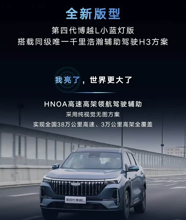以前这个价位的燃油 SUV 什么样?要么是合资品牌配置寒酸,连个像样的车机都没有;要么是国产车型智驾拉胯,高速还得自己盯着开。博越 L 小蓝灯版这次就是来打破这个局面的 ——15 万以内为数不多搭载千里浩瀚 H3 辅助驾驶方案的燃油 SUV,首款将高阶 NOA 功能下放至 11 万元级市场的燃油车型。