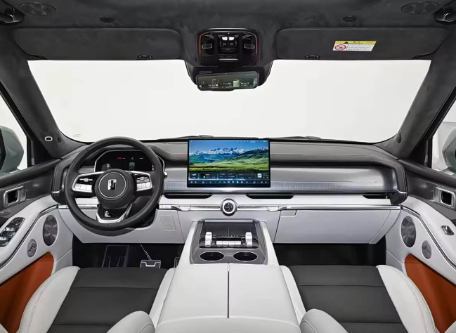 内饰方面,新款坦克700在保留原有硬派风格的同时,增加了科技与舒适性配置。座舱内依旧配备了全液晶仪表盘和悬浮式的中控大屏,中央通道区域则保留了大量的实体按键,这有利于在越野行驶时进行盲操作。根据按键的图标来看,新车预计会提供多种越野模式和差速锁功能。内饰细节上,新车增加了氛围灯及可升降杯架,脚踏板处也加入了带品牌LOGO的装饰,提升了细节处的精致感。新车增加了可翻折的吸顶屏,对于后排乘客而言是一项明显的配置升级,同时后排隐私帘也可提升私密性。