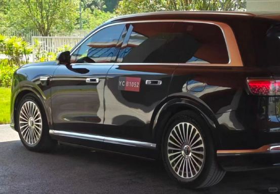 来看侧面,新款问界M9整体与现款差不多,不过侧边镀铬饰条更粗,门把手换为了尊界S800同款的摘星门把手,符合门把手新规要求。尺寸方面,新款问界M9车身长宽高为5285/2026/1845mm,轴距3125mm,相较于现款车型整体都更大了,车长增加55mm,车宽增加27mm,高度增加45mm,轴距增加15mm。反映在新款M9实车观感上,明显能感觉出来它就是比现款更加大气!
