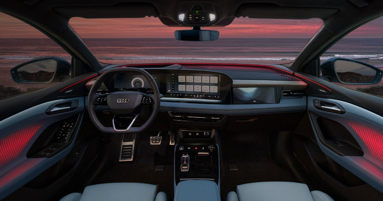 至于内饰设计,这款奥迪Q6L e-tron采用的是与奥迪A6L几乎如出一辙的内饰布局,贯穿样式的曲屏,副驾驶娱乐屏幕,也带有麻将样式的换挡机构,整个内饰的设计智能化程度较高,而且用料也是很厚道的。此外,还拥有数字座舱系统,也拥有真皮方向盘以及座椅加热通风功能,豪华车内氛围灯同样也是一应俱全。