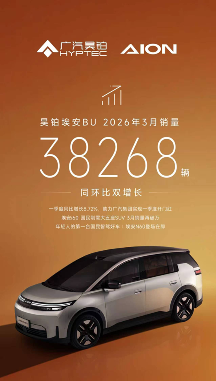 马年首季收官,中国汽车市场在多重因素交织下整体承压。然而,昊铂埃安却交出了一份颇为出色的成绩单:3月终端38268辆,同比增长12.28%,环比增长231.38%;1-3月销量合计75389辆,同比增长8.72%,实现一季度开门红,已成为广汽集团新能源板块的重要增长极。