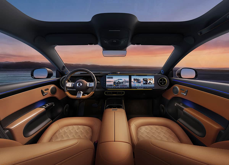 smart精灵#6的内饰官图近日正式释出。作为品牌旗下的首款豪华掀背轿车,其座舱整体延续了smart近期的家族化设计语言。最引人注目的莫过于中控区域那块连贯的屏幕组合,它将驾驶信息与副驾娱乐功能整合于一体,这种布局在当前市场上并不少见,但smart的处理方式显得颇为干脆利落。