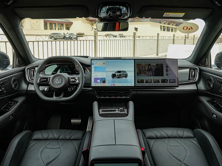 内饰方面,基本上沿用了极氪9X的布局,不过方向盘的造型有所变动,风格更显运动化一些;此外还提供有全液晶仪表盘、中控/副驾双联屏以及电子怀档,操作台部分设计有无线充电面板以及杯架,而且保留了实体按键,下方还有尺寸比较大的镂空储物槽,HUD抬头显示也没有缺席,配色方面有赤影红、纯黑、白黑和棕黑四种可选。