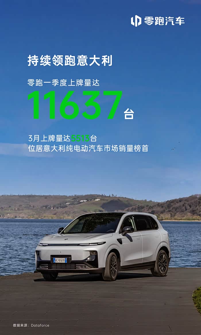 零跑汽车3月份意大利上牌量5513辆,同比增长2827%