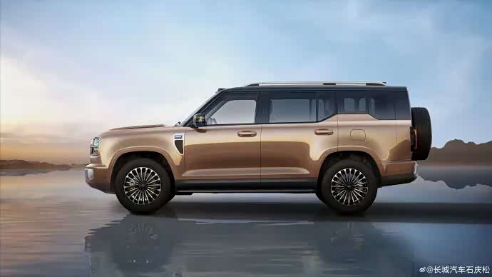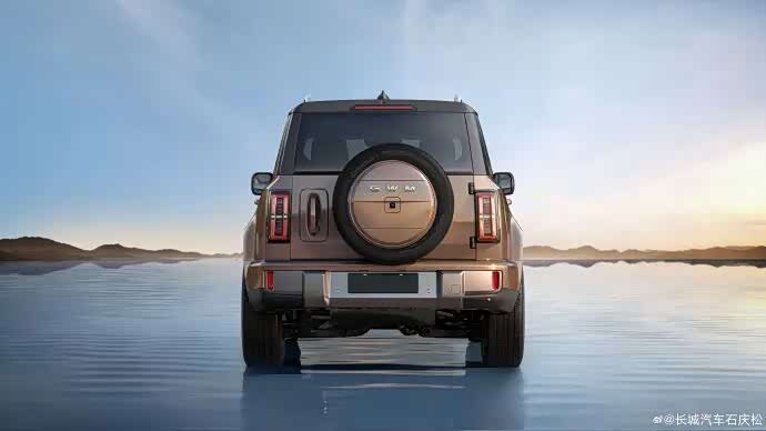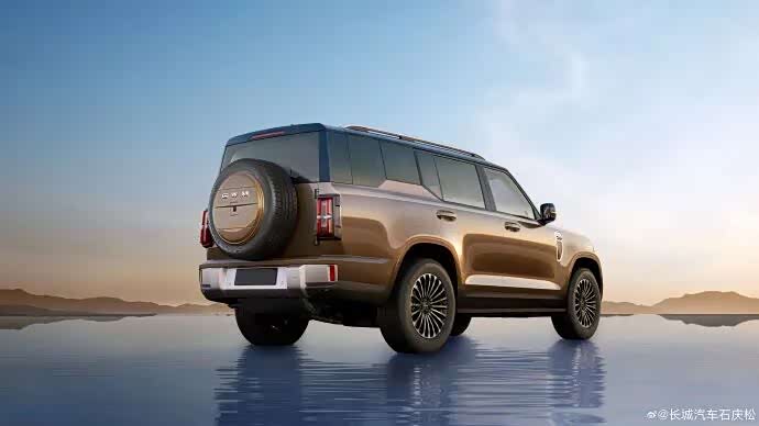 车身侧面,新车车身轮廓饱满,整体看起来非常修长,车顶采用趋于平直的线条设计,搭配车身腰线、隆起的轮眉以及车顶行李架,营造出硬朗的视觉效果。车尾方面,新车尾灯采用纵置灯组布局,灯组灯腔内部结构复杂,搭配挂式备胎设计,整体视觉上非常粗犷。另外,新车还采用侧向开门结构。