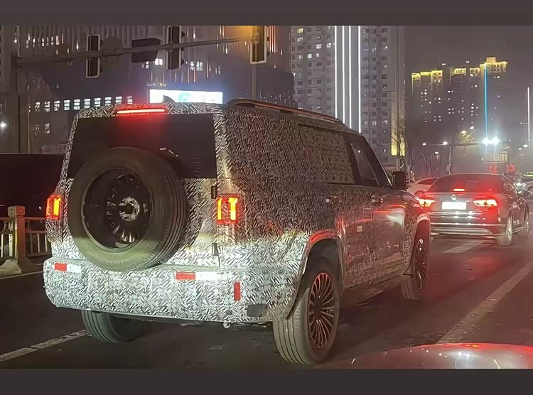 新车是个很有气场的大块头,只是尺寸数据暂未公布,悬浮式平顶造型与许多豪华SUV的设计相似,车身轮廓舒展大气,采用传统样式门把手、侧开式尾门以及外挂式备胎,提供车顶行李架、密辐大轮毂,而纵向熏黑尾灯内部结构花了一定的心思,看起来有种深邃感。