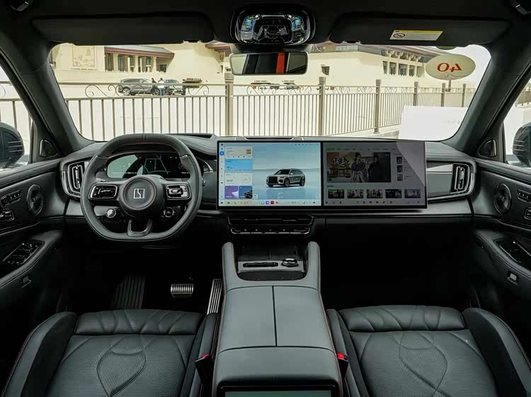 智能驾驶方面,极氪8X首发搭载新一代千里浩瀚G-ASD辅助驾驶系统。该系统配备43颗传感器及5颗激光雷达,由双NVIDIA DRIVE Thor-U芯片提供高达1400 TOPS的车端算力。车内智能座舱采用双高通骁龙8295芯片,标配44英寸AR-HUD抬头显示。高配车型还提供光语智能高清投影大灯、17英寸3.5K后排吸顶屏、16英寸双联屏、流媒体内后视镜以及29扬声器的Naim殿堂级音响系统。