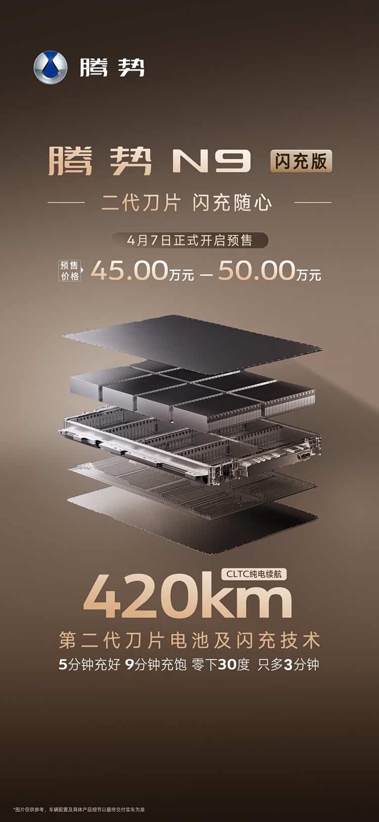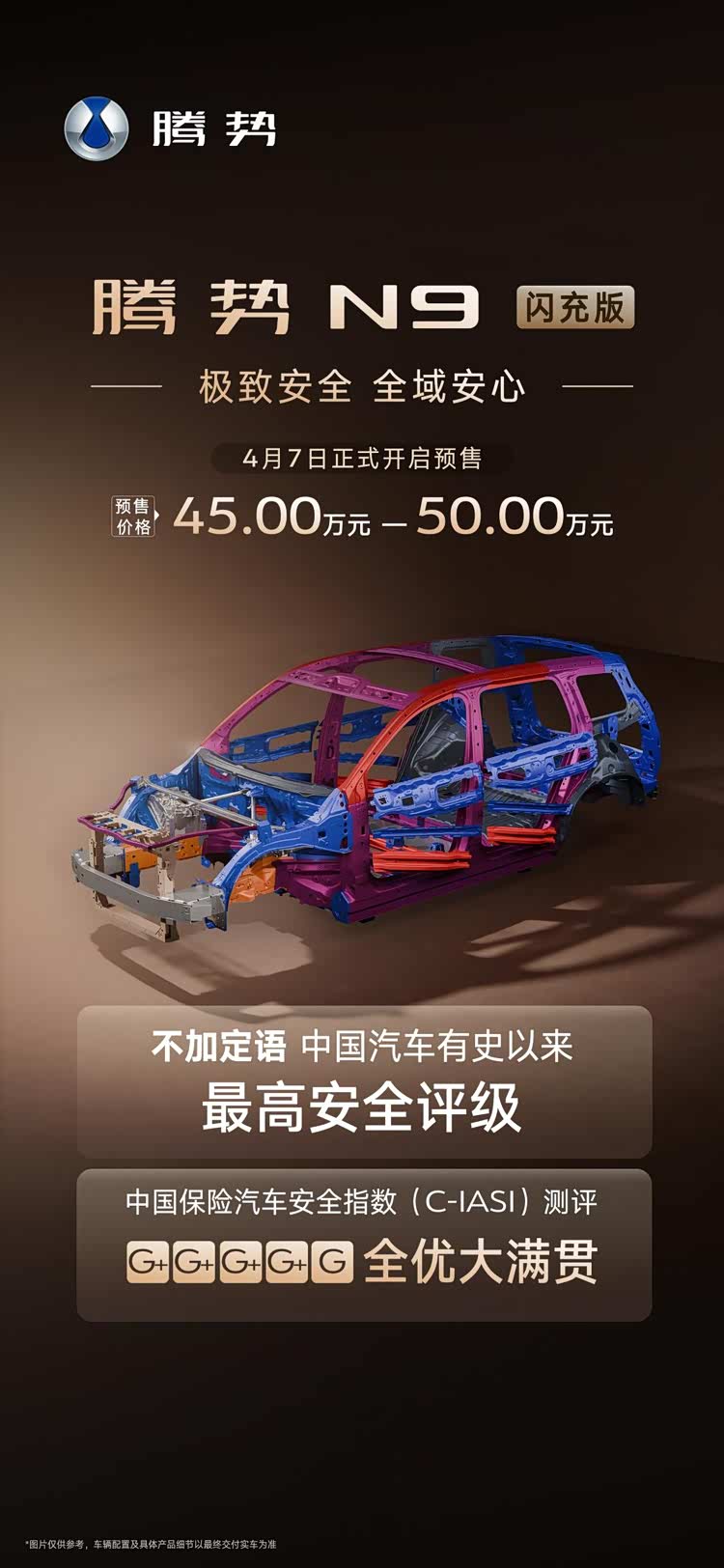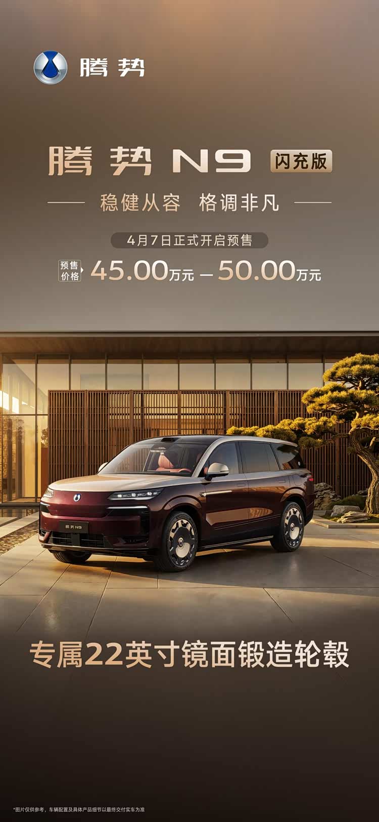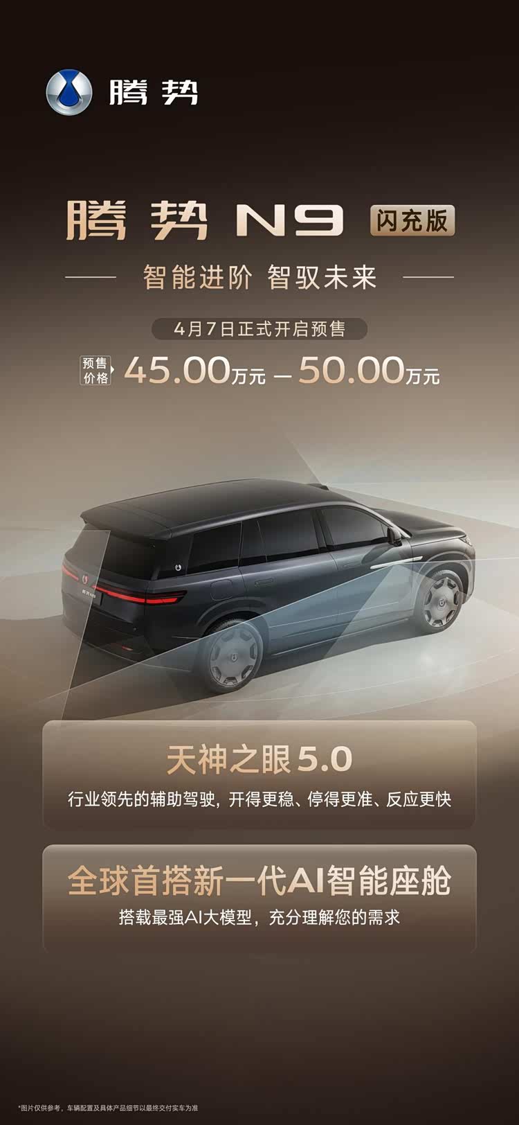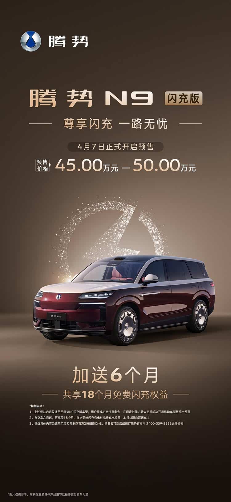 45万-50万元!腾势N9闪充版开启预售,18个月免费闪充权益限时享