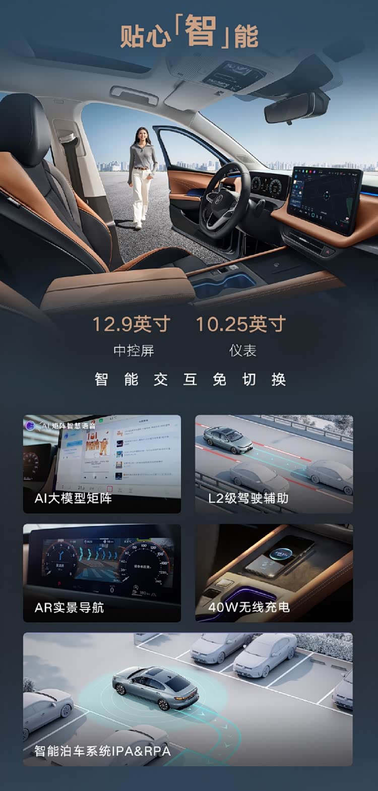 第二,智能与实用配置跟上了主流。采用8155芯片、20秒连续对话、能听懂四川话和粤语,还接了DeepSeek和豆包大模型。AR实景导航、30色氛围灯、12.9英寸中控屏,10.25英寸液晶仪表,加上22处储物空间,实用和科技感两头都照顾到了。
