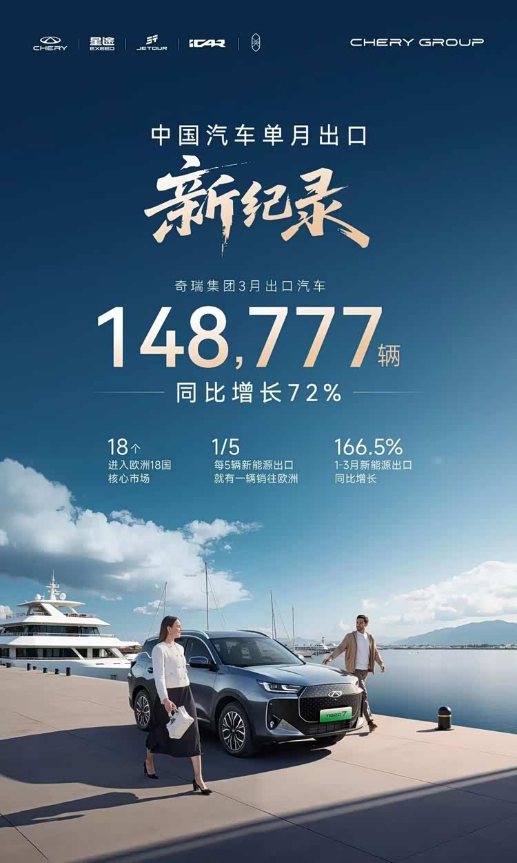今年1-2月中国汽车出口155万辆,同比大增61%;新能源出口67万辆,增长88%。今年3月,好多车企出口销量成绩单同样出色,比如奇瑞集团出口近15万辆,再创中国新纪录。出口已经成为车企一条实在的增长线,这是值得高兴的。