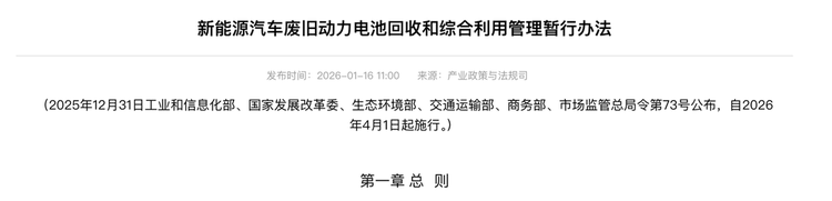 有人可能会说了,就算电池能用那么多年,但换电池的成本不是依然很高?其实2026年4月1日开始施行的《新能源汽车废旧动力电池回收和综合利用管理暂行办法》就已经把三元锂电池更换维修的成本统一限制在每kWh不超过180元了。换句话说,过去那种动辄花个六七万、甚至十几万换一块电池的情况应该不会再出现了。