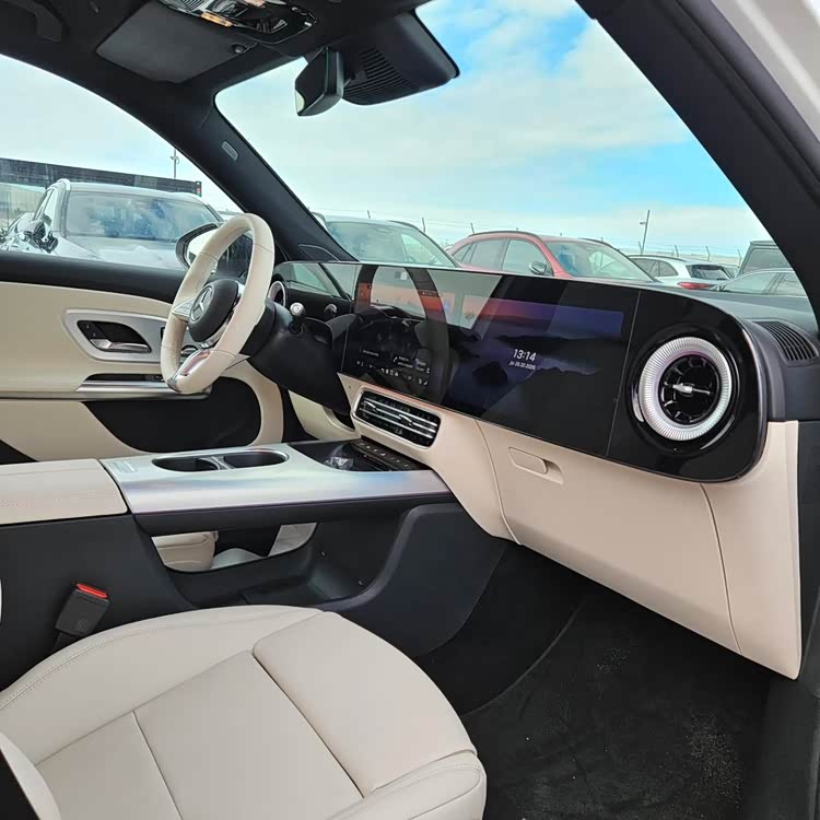 车内采用了新的设计,提供10.25英寸全液晶仪表,采用14英寸的中控屏幕以及14英寸的副驾驶屏幕造型,提供第四代MBUX系统,内置ChatGPT4o虚拟助手。还提供城区及高速领航辅助驾驶系统