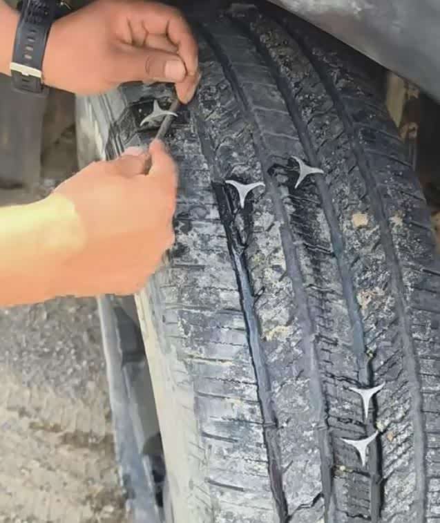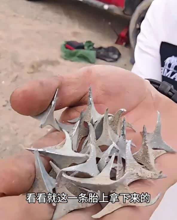 这设计,不是普通钉子,是“智能陷阱”。它利用重心原理,不管怎么扔,总有一根尖朝天。就像个微型捕兽夹,静等猎物踩上来。橡胶轮胎被扎后不会立刻漏气,而是“慢撒气”,你开个几公里甚至几十公里才发现胎压报警。等你察觉,钉子早拔不出来了,只能换胎。