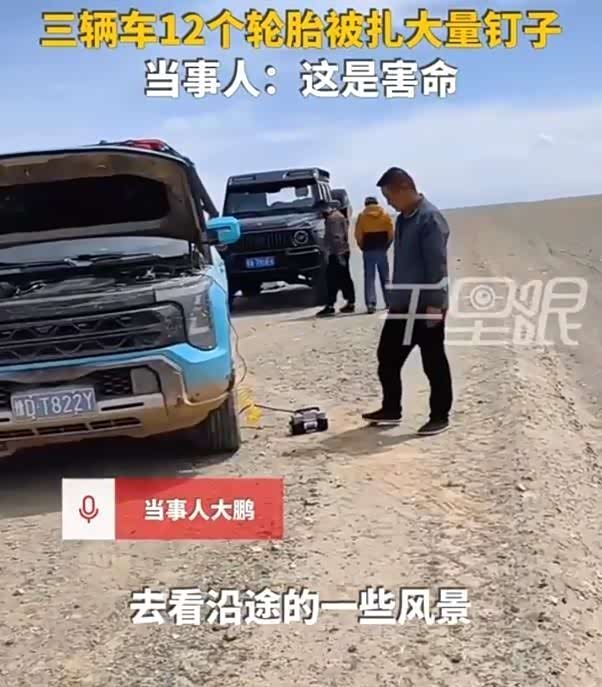 各位车友,我今天不聊车,但还是要和大家聊一个发生在青甘大地上、让所有自驾爱好者心头一紧的事——三辆旅游博主的车,在青甘环线非铺装路上,12条轮胎全被扎破,而元凶极可能是一种淘宝上15块钱包邮的“三角扎胎器”。
