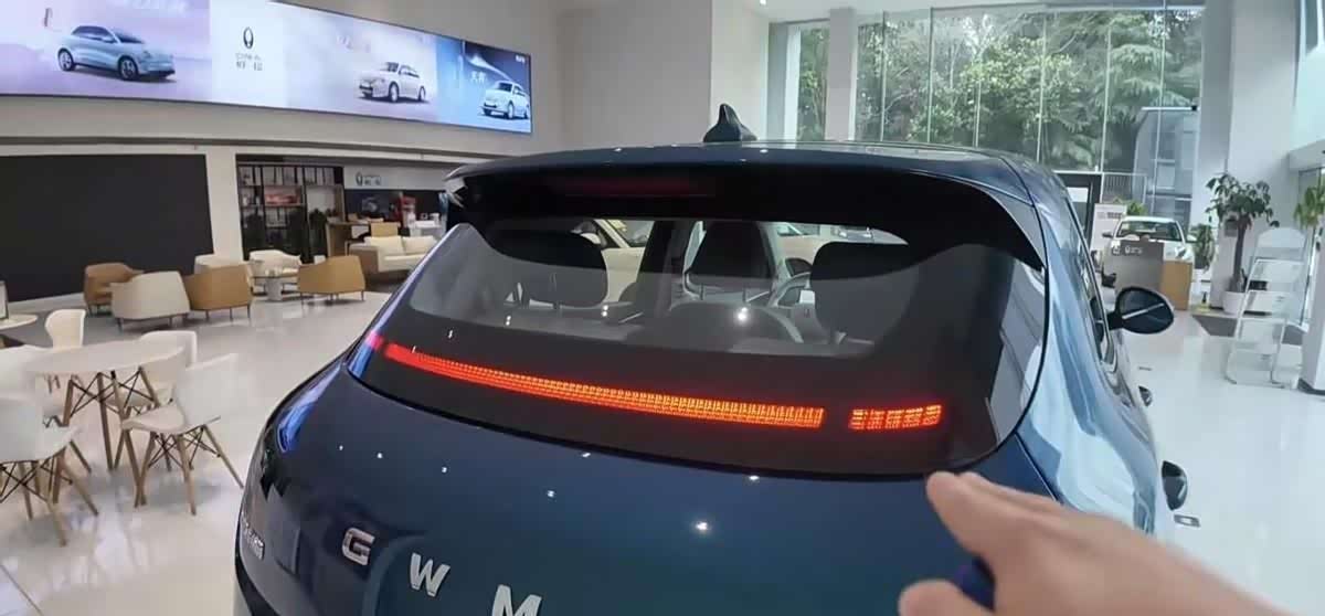 初看2025款好猫,熟悉的圆润线条和椭圆“猫眼大灯”依旧是其标志符号,40颗LED光源组成的灯组在暗夜中可照射104米,兼顾灵动与实用。但细品之下,新意尽显:前保险杠新增的竖型通风口优化了空气动力学,梯形进气格栅面积更大,搭配18英寸“八音盒机芯”轮毂(可选全熏黑+彩色卡钳),复古中透出科技感。最引人注目的变化在车尾——尾灯创新式隐藏于后挡风玻璃下方的黑色饰带内,形似跳动的音乐频谱,夜间点亮时辨识度极高;而尾标从“ORA”升级为“GWM”,则昭示着长城技术基因的深度赋能。