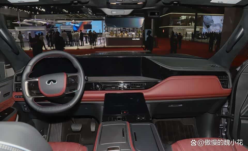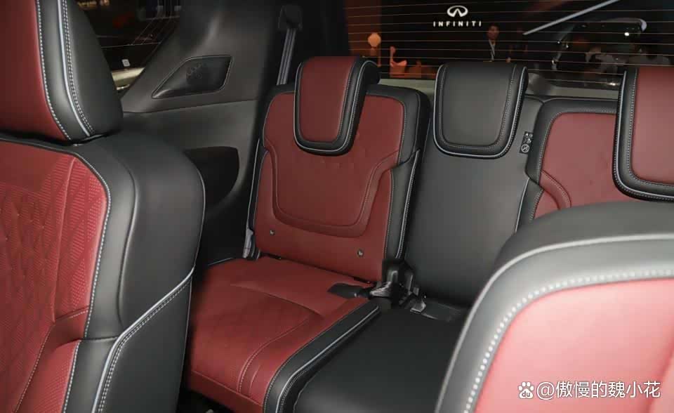 看完了外观,再看看内饰表现,其实从外观上看就已经给内部奠定了基础,我们就以图中的版本为例,红黑相间的配色,不仅能带来更奢华的感觉,而且对整个运动性的延伸也起到了关键作用。显示区,这款全新英菲尼迪QX80采用全新双14.3英寸显示屏布局,以往物理按键的位置都被9英寸多功能控制屏取代。当然除了图中的酒红色配色以,还采用了黑色、米色、檀柏褐棕三种内饰风格,Autograph车型拥有专属勃艮第红内饰,并升级有Alcantara车顶内衬、方向盘INFINITI专属标识、琴弦式激光雕刻实木饰板以及车门扶手双色皮革设计。确实能带来前所未有的高级感。