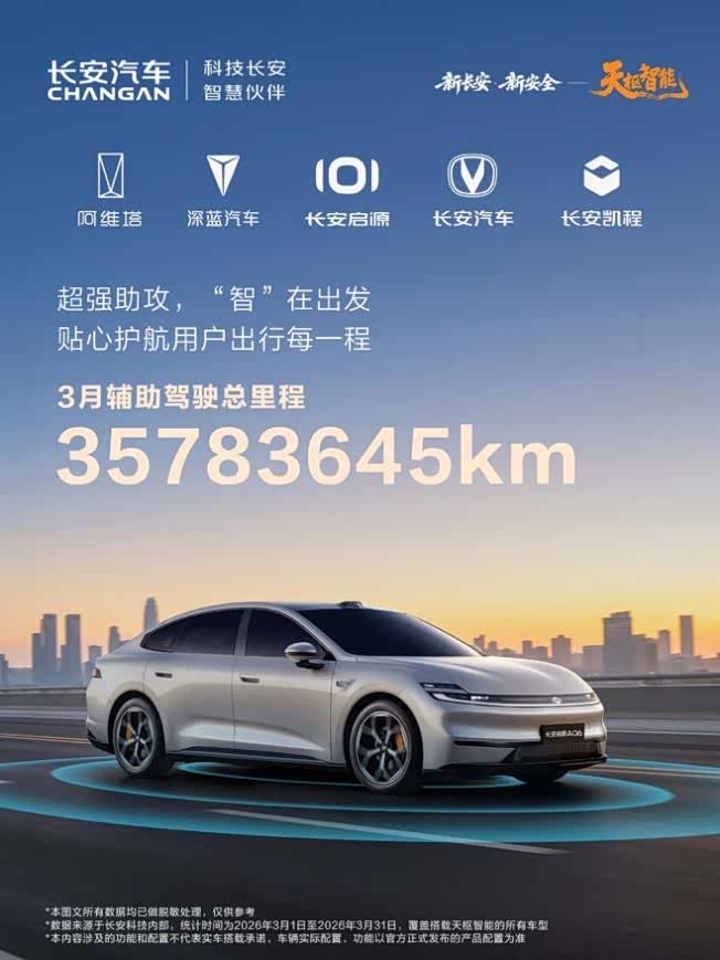 官方数据显示,在2026年3月,所有搭载天枢智能的长安车型累计辅助驾驶总里程已达3578万公里,相当于绕地球900圈;系统主动避免可能的碰撞超2.4万次,更在131km/h时速下成功避免碰撞……这些数字背后,意味着天枢智能的安全守护,早已融入用户日常通勤、周末出游和节假日返乡的每一段行程。