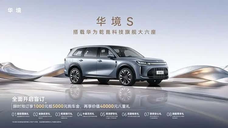华境S领航科技品鉴会现场,新车正式开启全国预订。用户可通过华为乾崑APP、华境汽车小程序、华境汽车抖音账号等官方通道下订。限时下订可享受 1000 元抵 5000 元购车金,更可叠加价值40000元的八重专属礼遇。伴随产品发布,华境S首批 158 家体验中心已整装待发,强势覆盖全国131城,更多门店正持续点亮,以专业、贴心、高效的服务全程陪伴。
