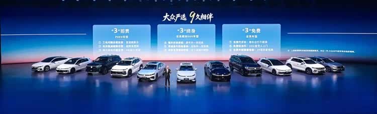 如果说速腾S的定价是市场层面的“进攻”,那么“9久相伴”服务体系的承诺则是品牌层面的“防守”。这套服务体系被整齐地划分为三个维度:三担责针对PHEV车型,三终身针对燃油SUV,三免费覆盖全系车型。3个维度看似复杂,实际上只回答了一个问题:凭什么让用户继续信任一汽-大众?