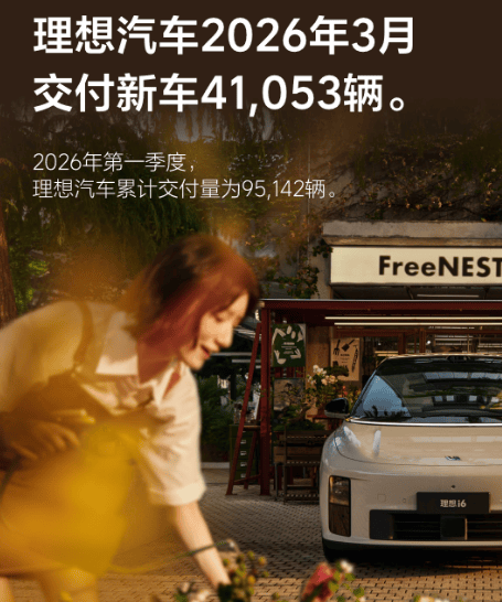 一季度,理想汽车累计交付量达95142辆,超额完成了此前公布的8.5-9万辆交付指引,其中3月单月交付量达41053辆,延续了稳健的增长态势。值得关注的是,纯电车型i6表现格外亮眼,3月单月交付量超2.4万辆,占当月总交付量的六成,成功成为拉动销量增长的核心主力,也标志着理想在纯电领域的布局逐步见效。