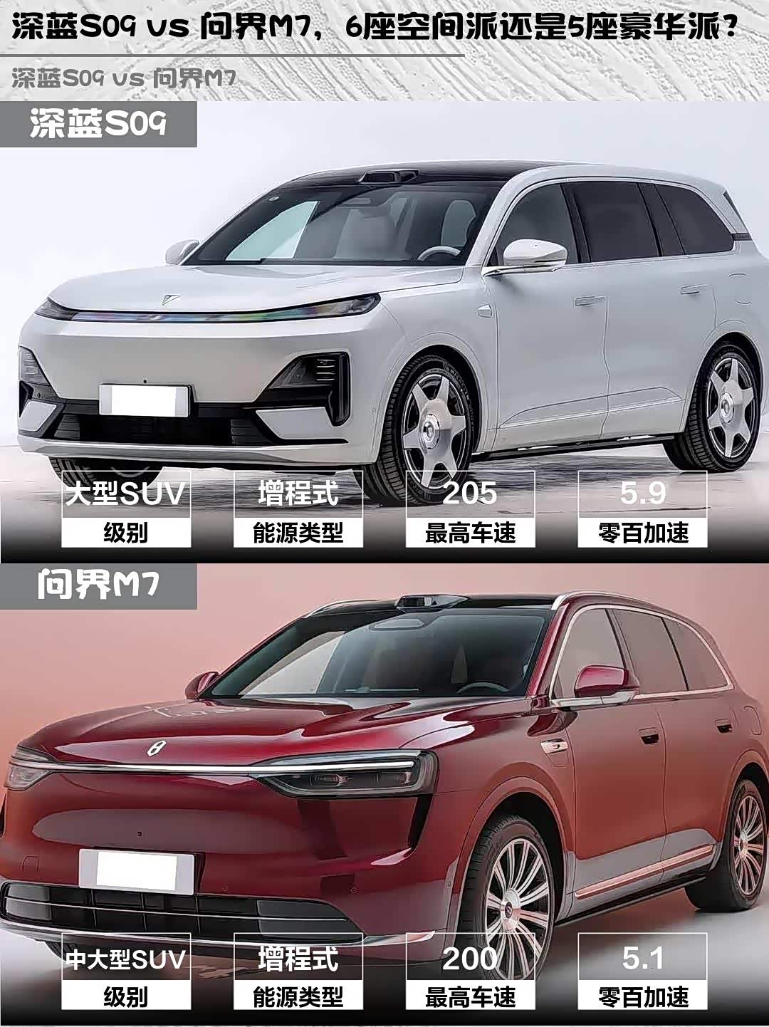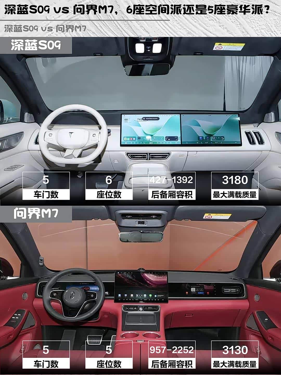总结:要空间灵活选深蓝S09,要豪华质感选问界M7。两台车都是30万级全能选手,你会Pick谁?