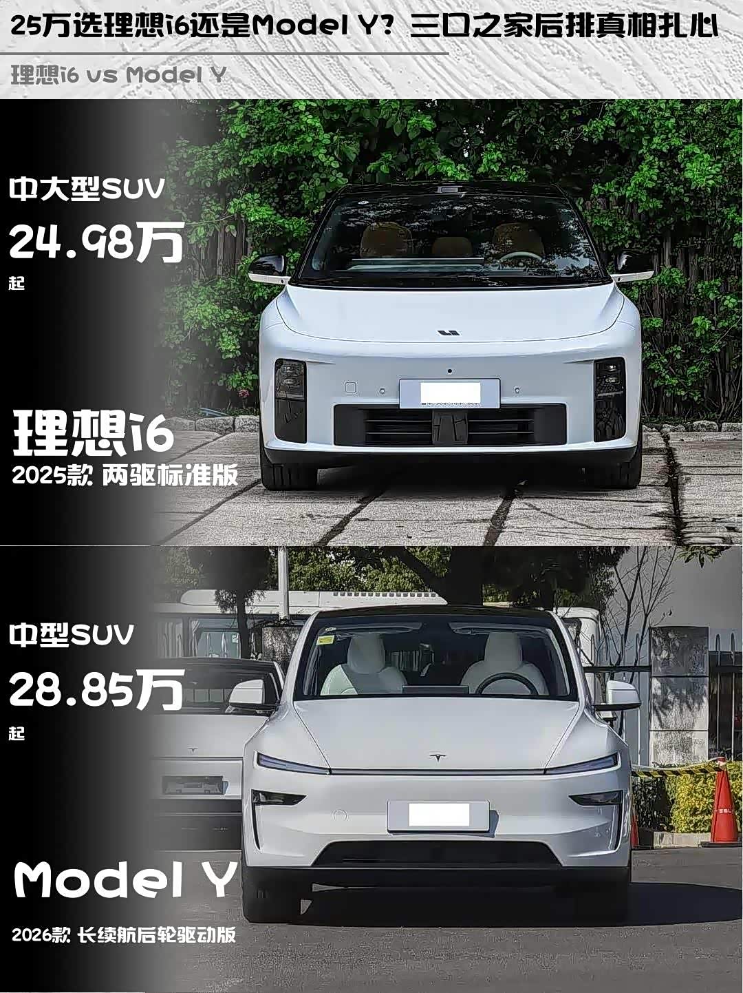 最近在25万级纯电SUV里纠结了好久, 理想i6(参数|询价) 2025款两驱标准版和Model Y 2026款长续航后驱版到底怎么选?作为深度试驾过两台车的准车主,来聊聊真实感受!🚗💨