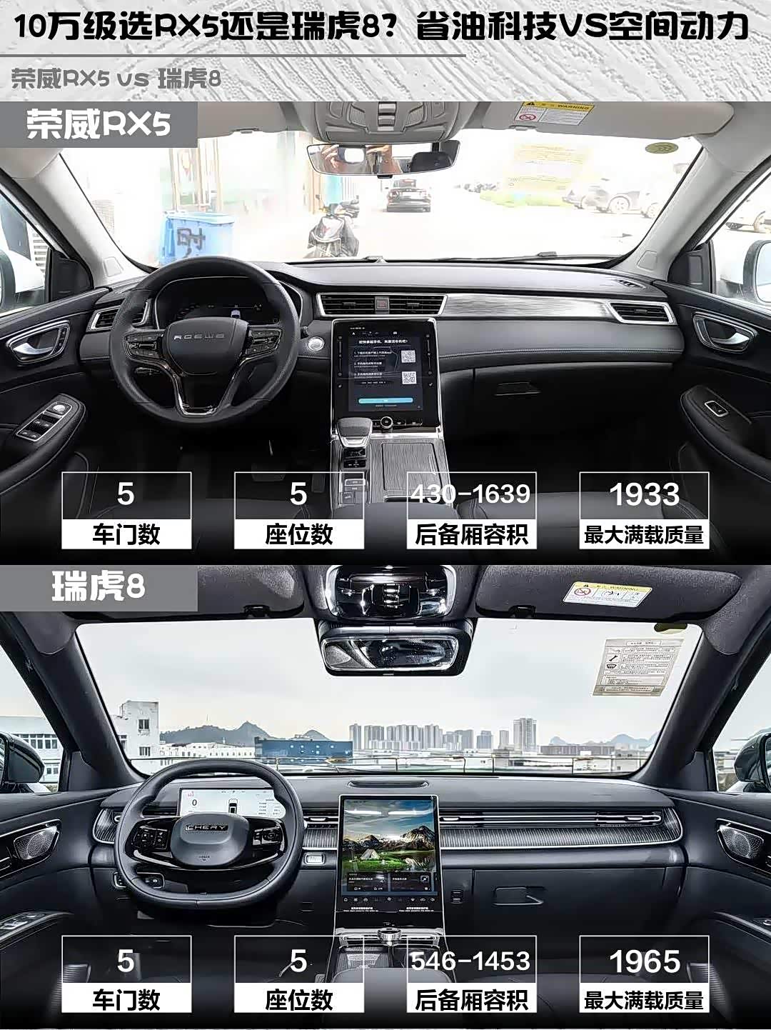 要颜值科技选荣威RX5,要空间动力选瑞虎8!我最后提了瑞虎8,就因为经常带家人自驾游,那个后排空间真的拒绝不了~你们会怎么选?