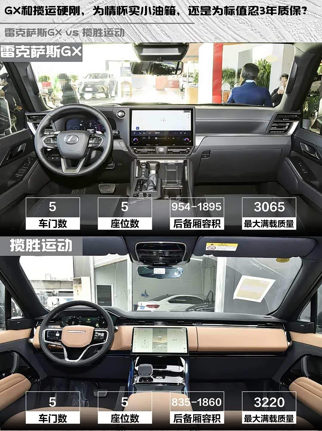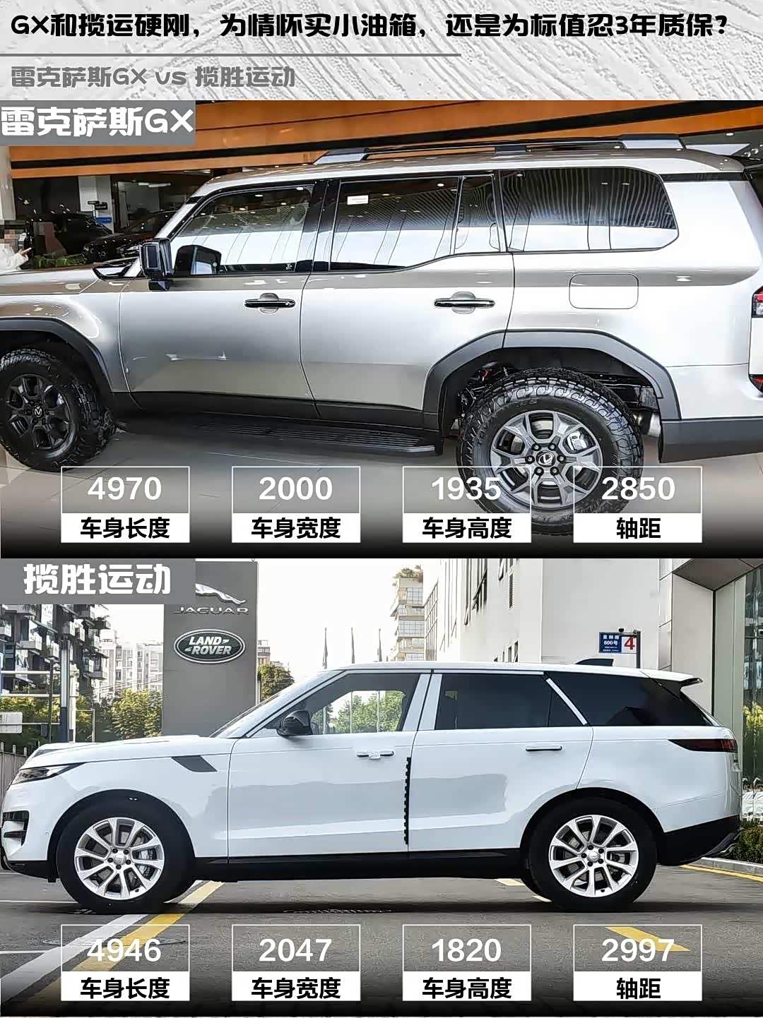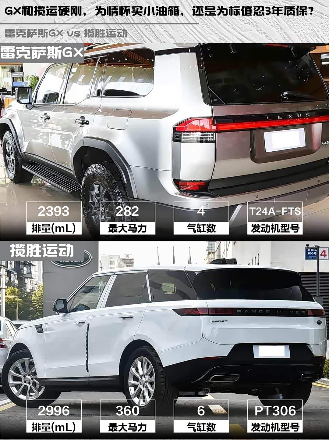 要可靠性和越野底子选GX,但要忍受四缸机声浪和小油箱;追求品牌溢价和公路性能就上揽运,记得选装L2驾驶辅助(GX是标配)。话说你们会为情怀买单还是为标充值?