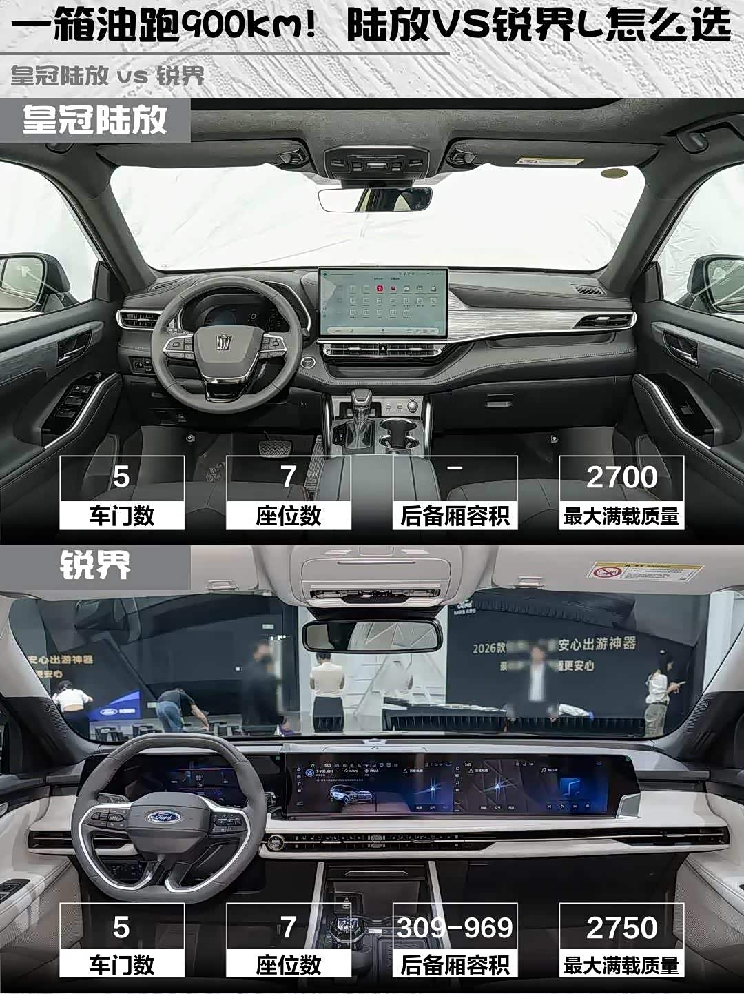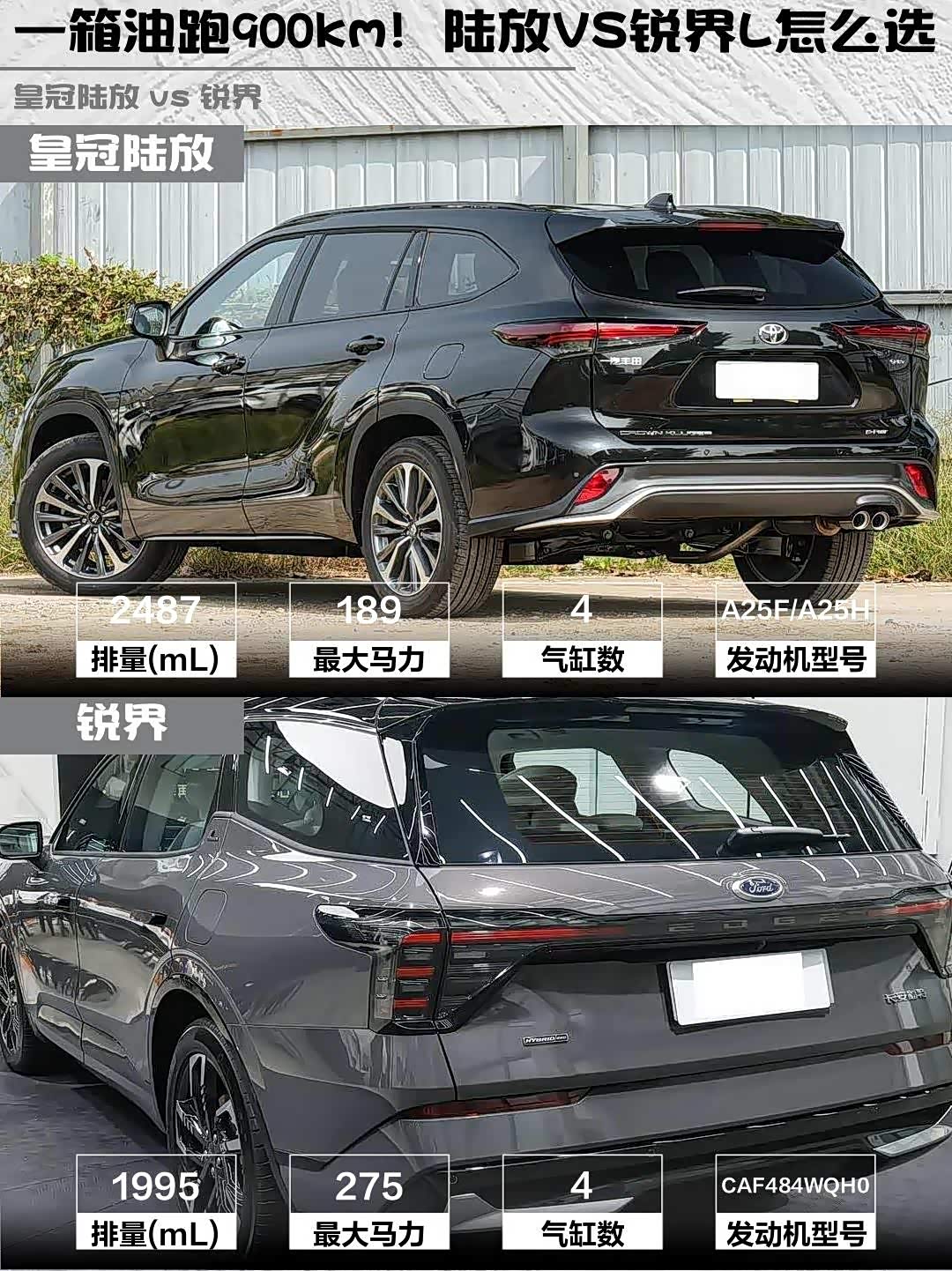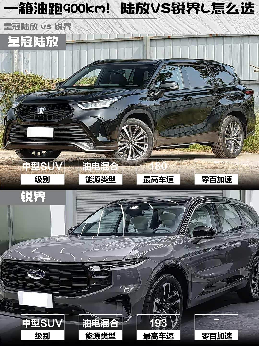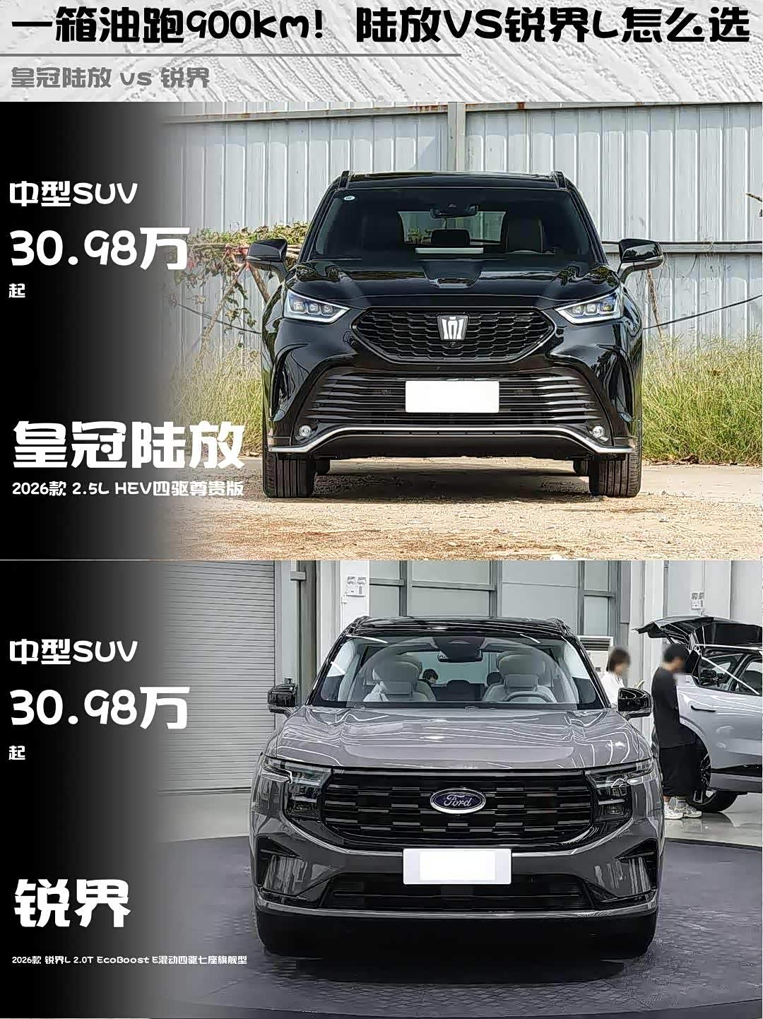 最近后台好多兄弟在问30万级混动SUV怎么选,今天就来聊聊 皇冠陆放(参数|询价) 2026款 2.5L HEV四驱尊贵版和锐界 2026款 锐界L 2.0T EcoBoost E混动四驱七座旗舰型这对老对手,实测对比干货直接上!🔥