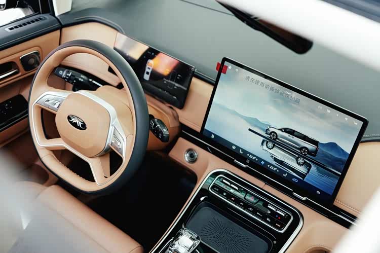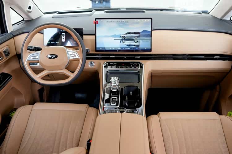 坐进驾驶舱,第一感受便是舒适与温润。车内大面积采用软性材质包裹,触感细腻,内饰设计层次分明,中控台布局规整,功能分区清晰,四幅式方向盘兼具稳重感与高级感,无论是日常家用还是商务驾驶,都能感受越级内饰质感。